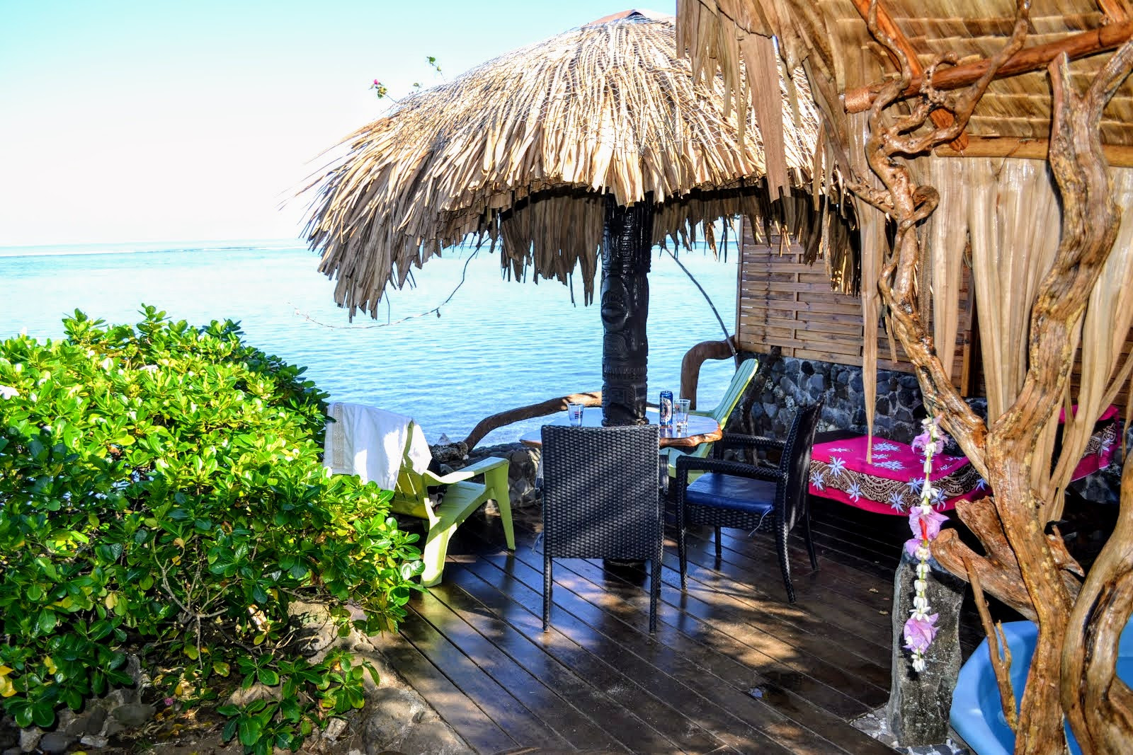 Here we live feet in the water, the view of the lagoon is breathtaking from morning until evening. Admire the color palettes available to you, the sunsets are most magnificent on this side of the island.