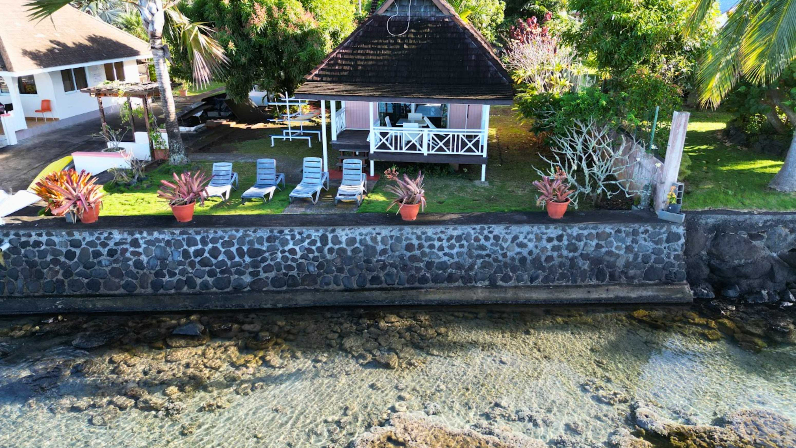 At the edge of the lagoon, a beautiful shared swimming pool with deckchairs for sunbathing. A Fare Pote is at your disposal with tables and benches for aperitifs and meals, and for admiring the sunsets over the lagoon.