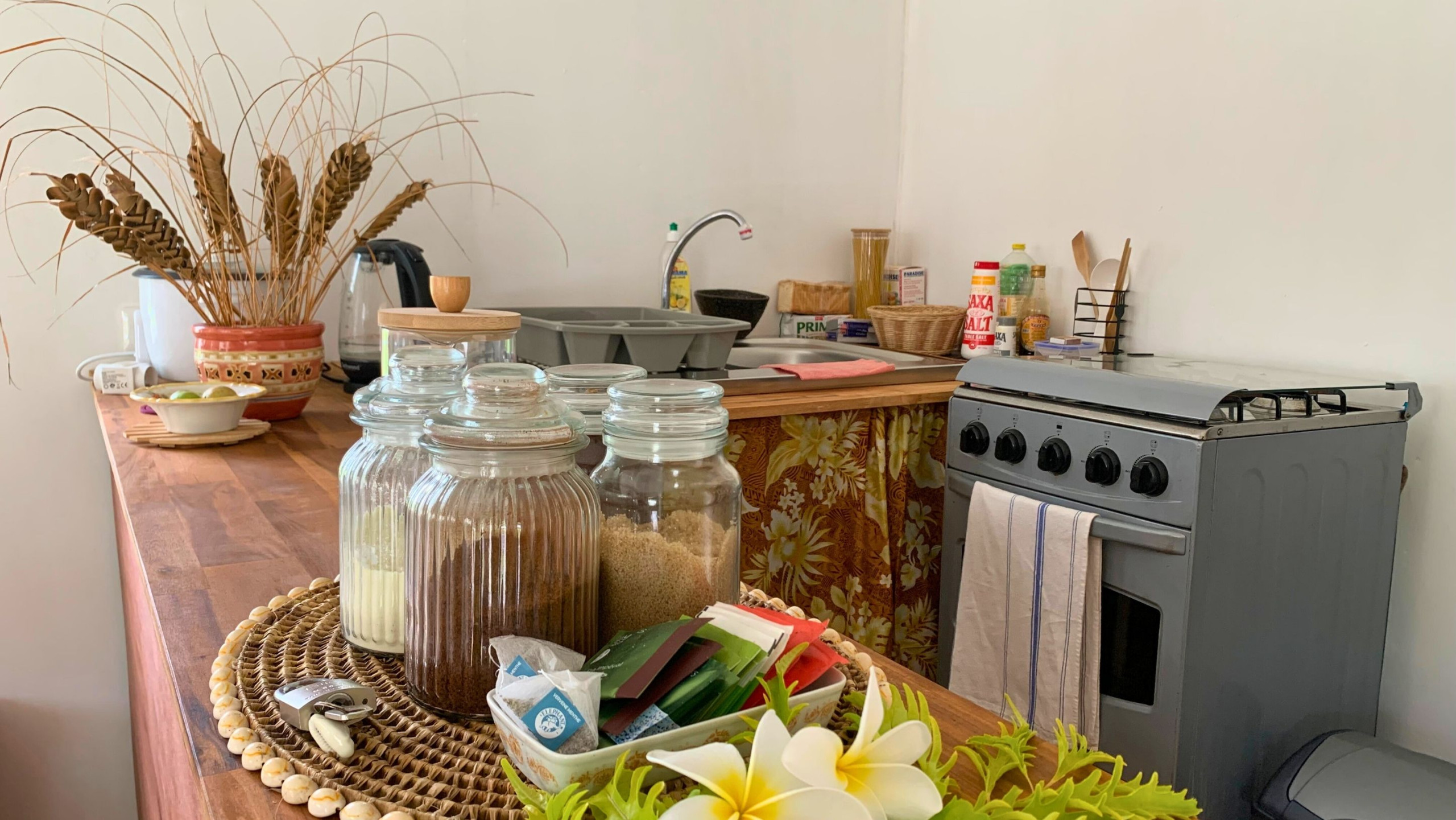 In the gas independent kitchen, refrigerator, microwave, oven, dishes/cutlery, coffee machine and kettle are provided.