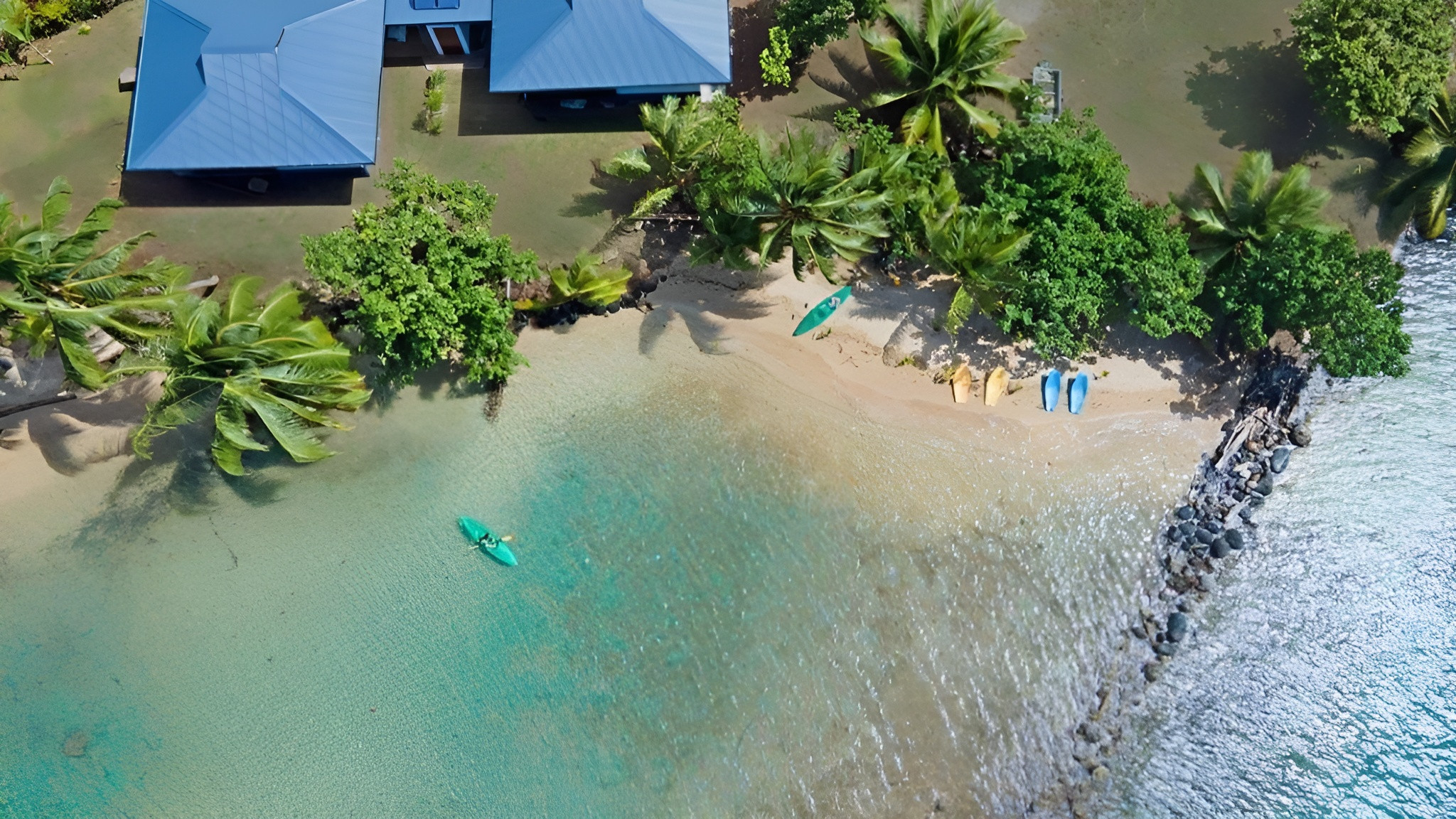 Located south of Raiatea, in the heart of the Leeward Islands in French Polynesia, Fare Oviri 1 welcomes you in an authentic setting between lagoon and mountain, just steps away from the Marae of Taputapuatea, a cultural site classified as a UNESCO World Heritage Site. The estate offers a private beach with kayaks, perfect for exploring the turquoise lagoon at your leisure.