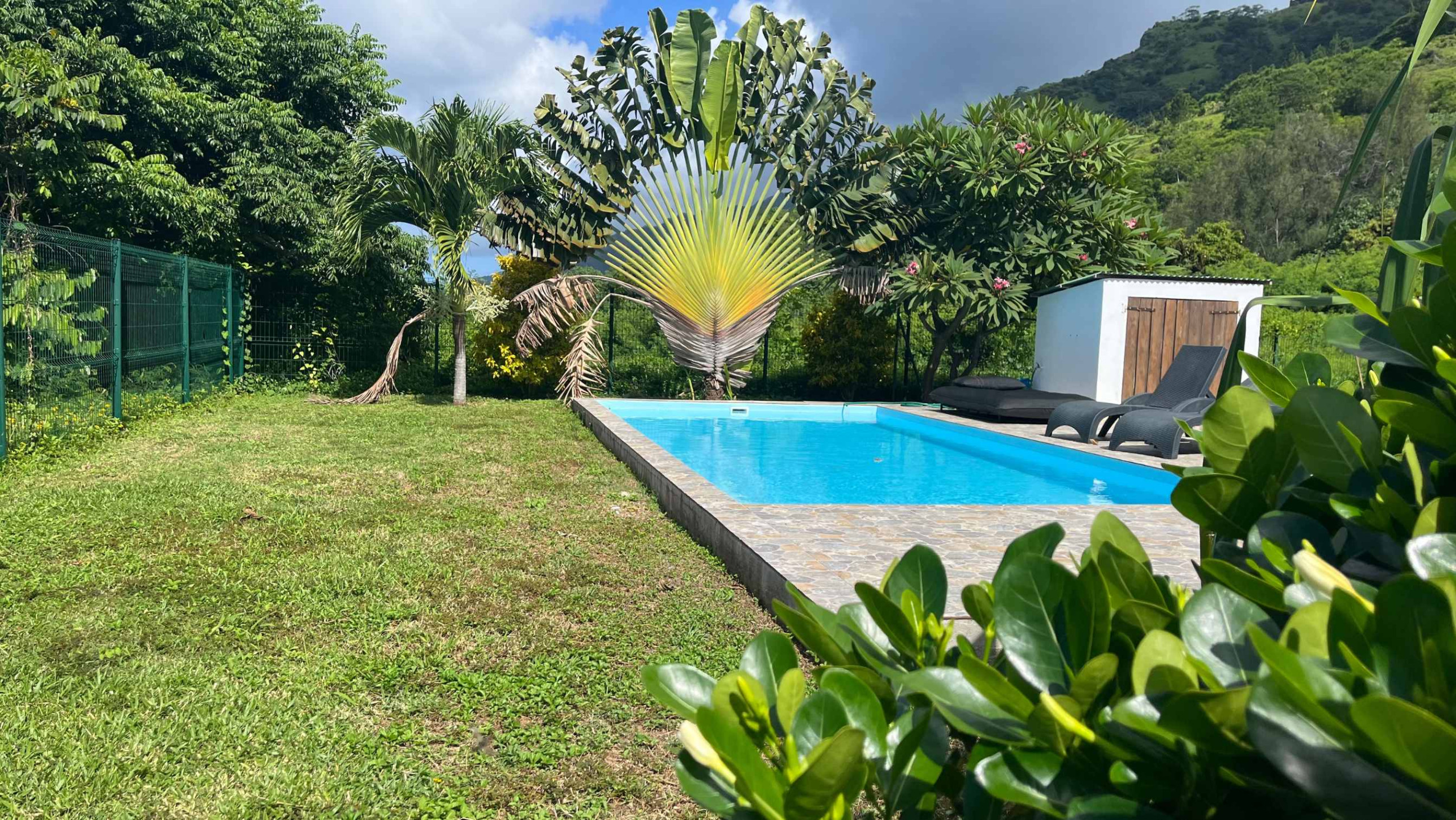 The swimming pool is shared with the tenants of the neighbouring fare: ideal for cooling off or admiring sunsets. Also enjoy a garden with some tropical plants and flowers