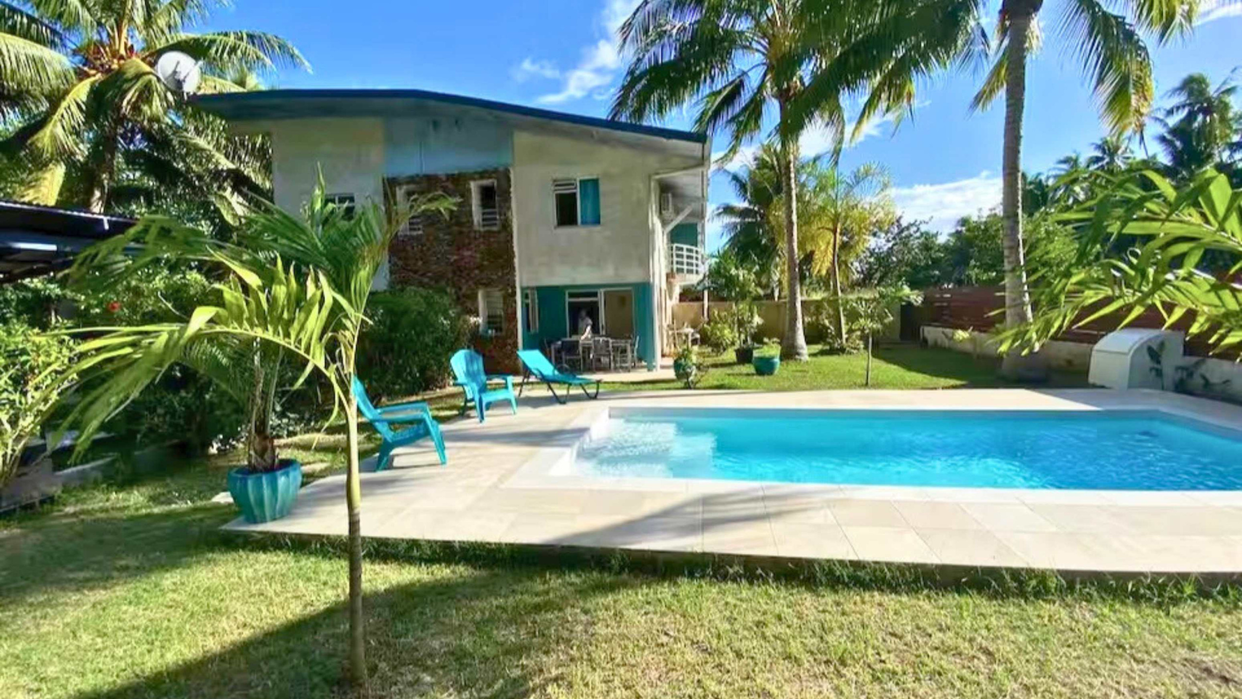 Welcome to the Coconut Pool House 4, a 70 m² accommodation that can accommodate 5 people. Ideal for family holidays or a romantic couple's stay. Located in the peaceful commune of Pihaena, just 20 minutes by car from the ferry quay, in the heart of a quiet residential area. The accommodation offers a beautiful view of the mountain and garden, conducive to relaxation and a change of scenery.