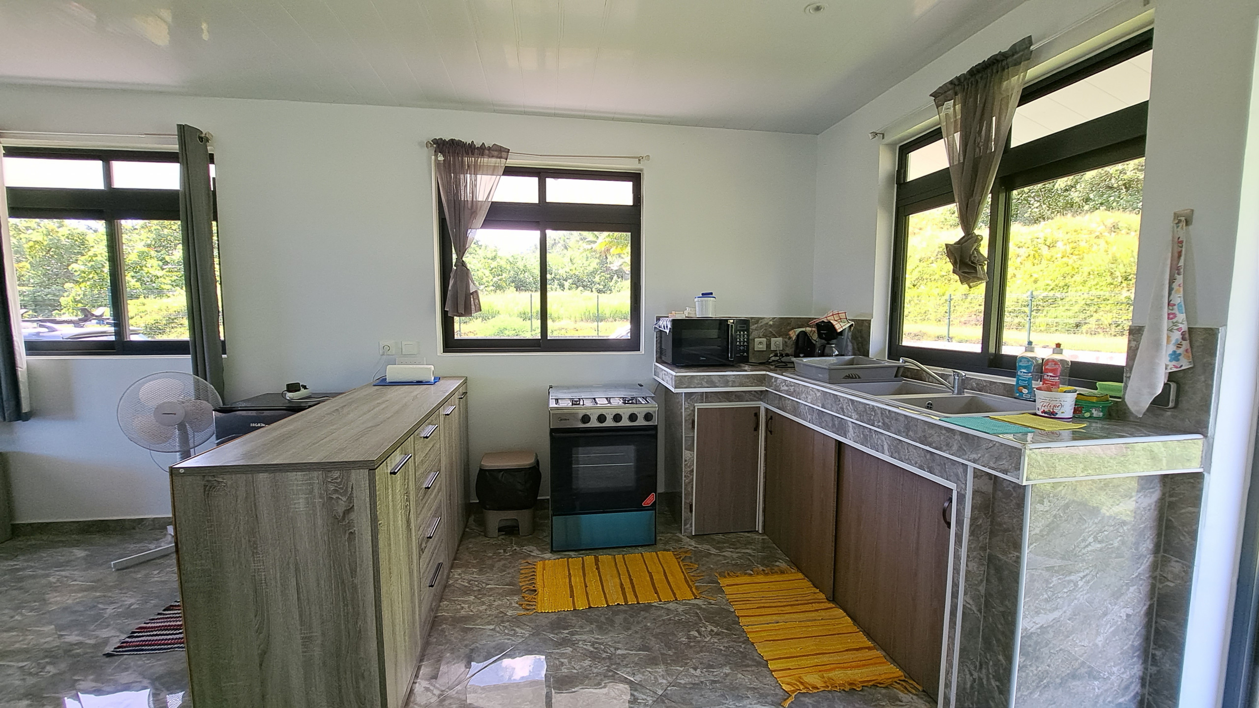 The house is made up of a main room with a fully equipped open kitchen, a living room with a sofa bed for 2 people, an air-conditioned bedroom with a Queen Size bed and storage space, a bathroom with toilet. A washing machine is also available.