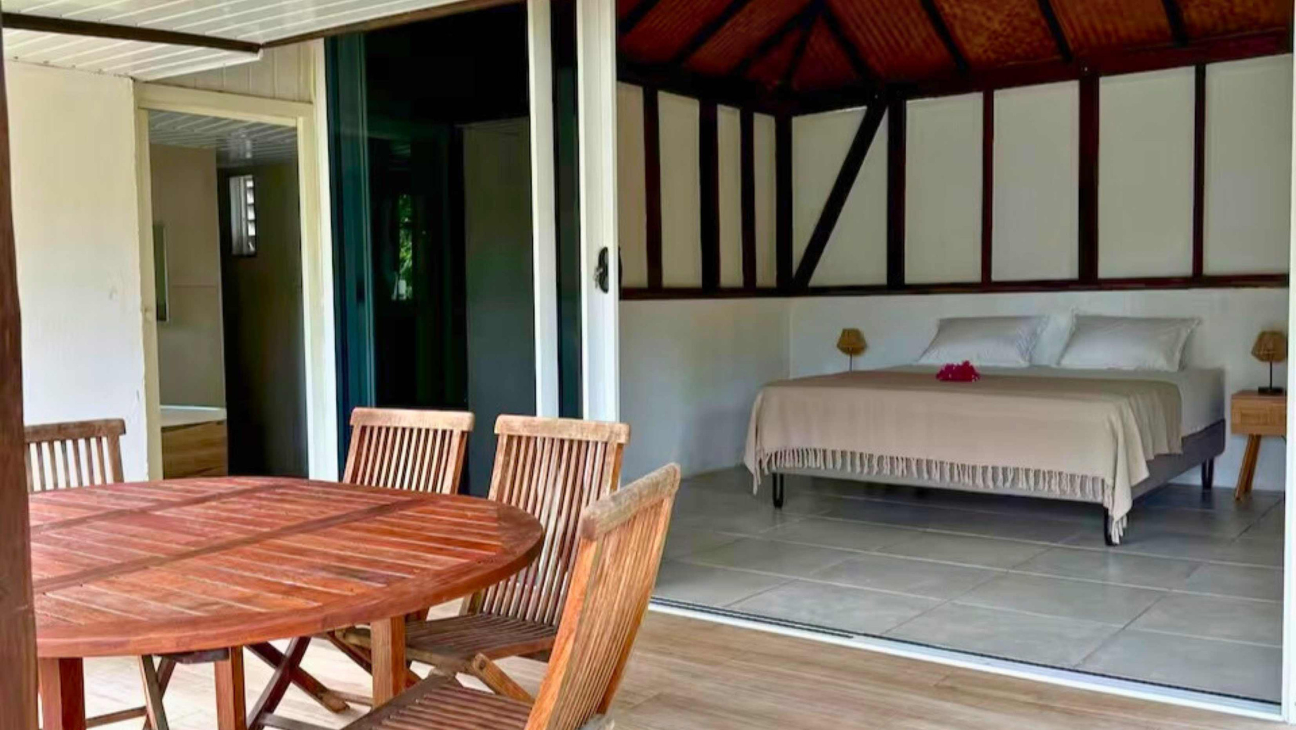 The terrace with sea view and overlooking the island of Tahiti is fully equipped with table, chairs... to have your meals, relax, or enjoy a well-deserved aperitif after an intense day of discovering this paradise on Earth.