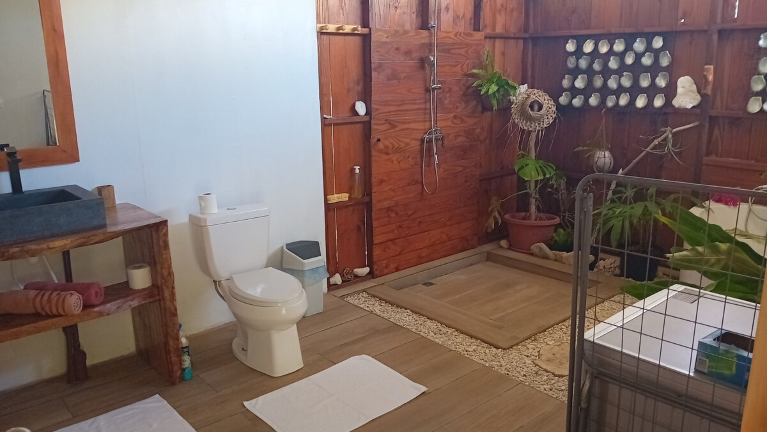 The heart of the accommodation is its large adjacent local patio, in the spirit of a fare pote'e, ideal for taking your meals, relaxing and enjoying the tropical garden that surrounds the property.