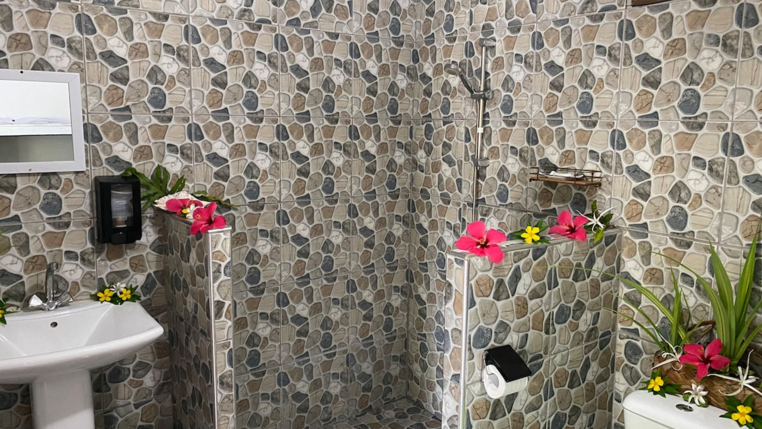 Indoor bathroom + outdoor shower