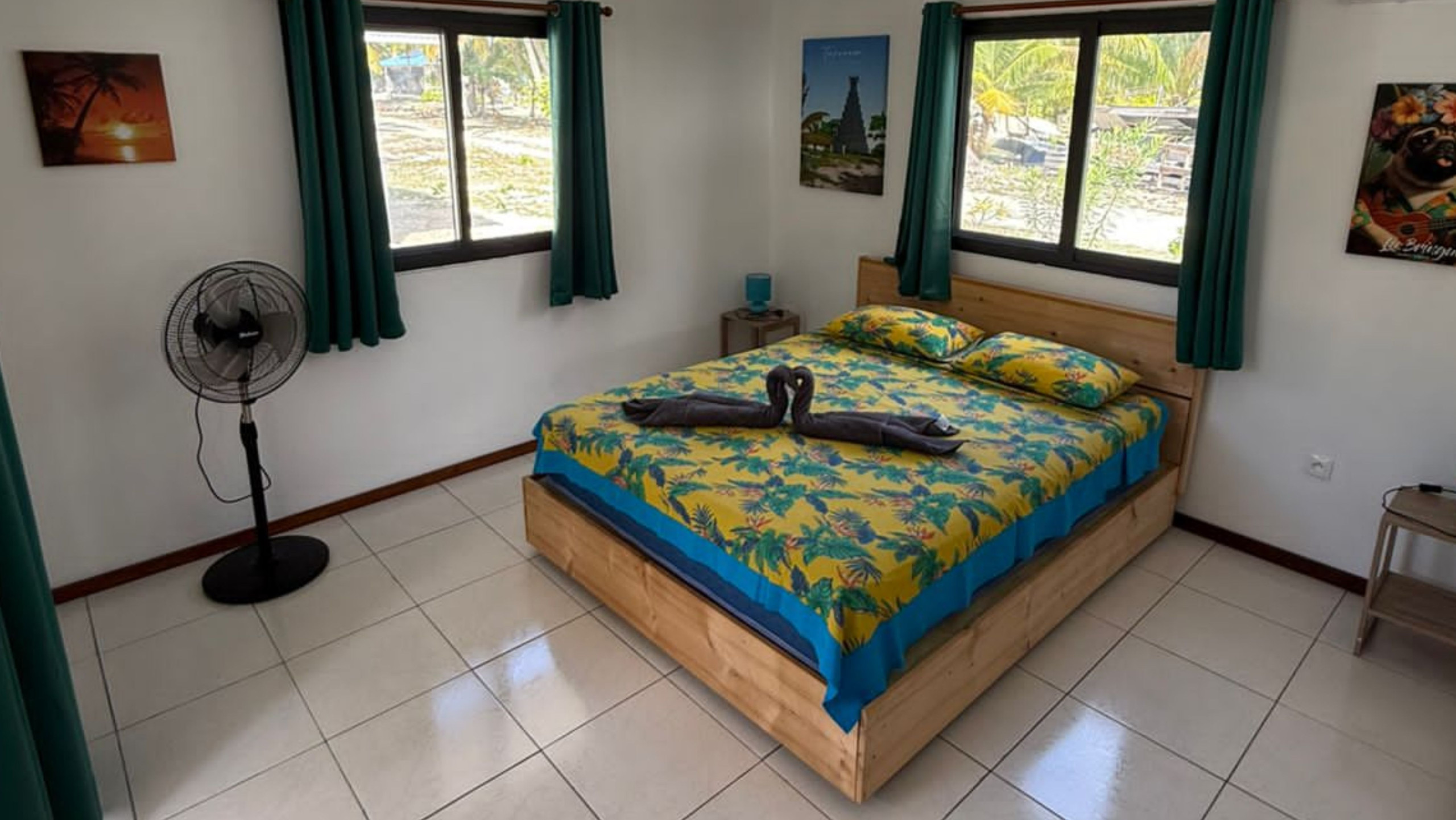 Hello and Welcome! Welcome to this 50 m² family bungalow Beach house 3, nestled in a peaceful coconut grove just steps away from Fakarava's turquoise lagoon. Ideal for a family or group of friends, it offers a spacious and warm setting to fully enjoy your stay.