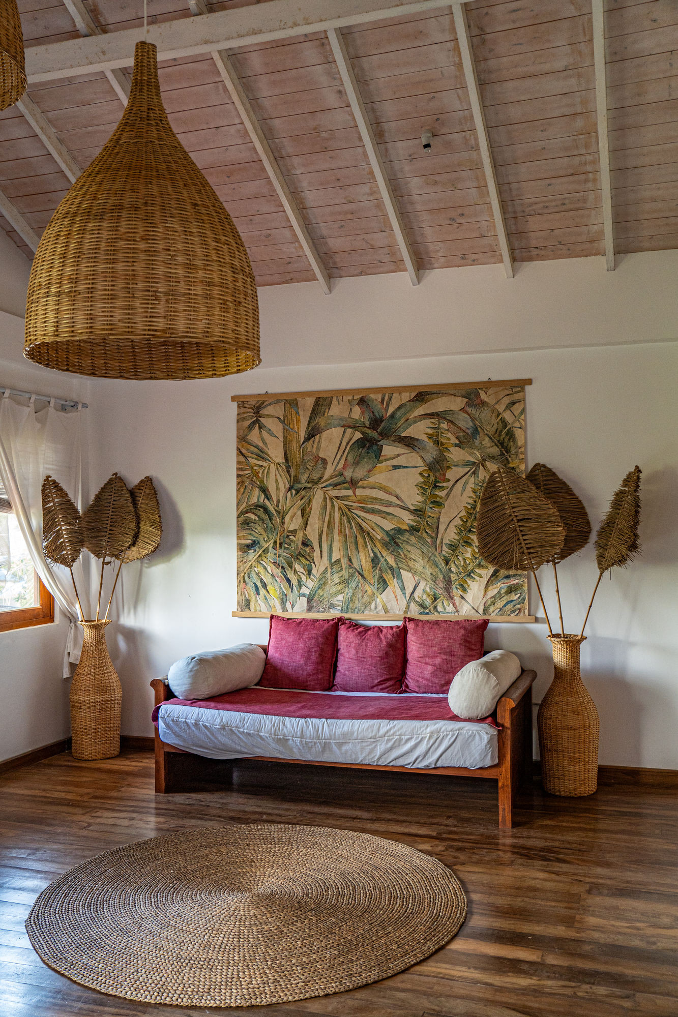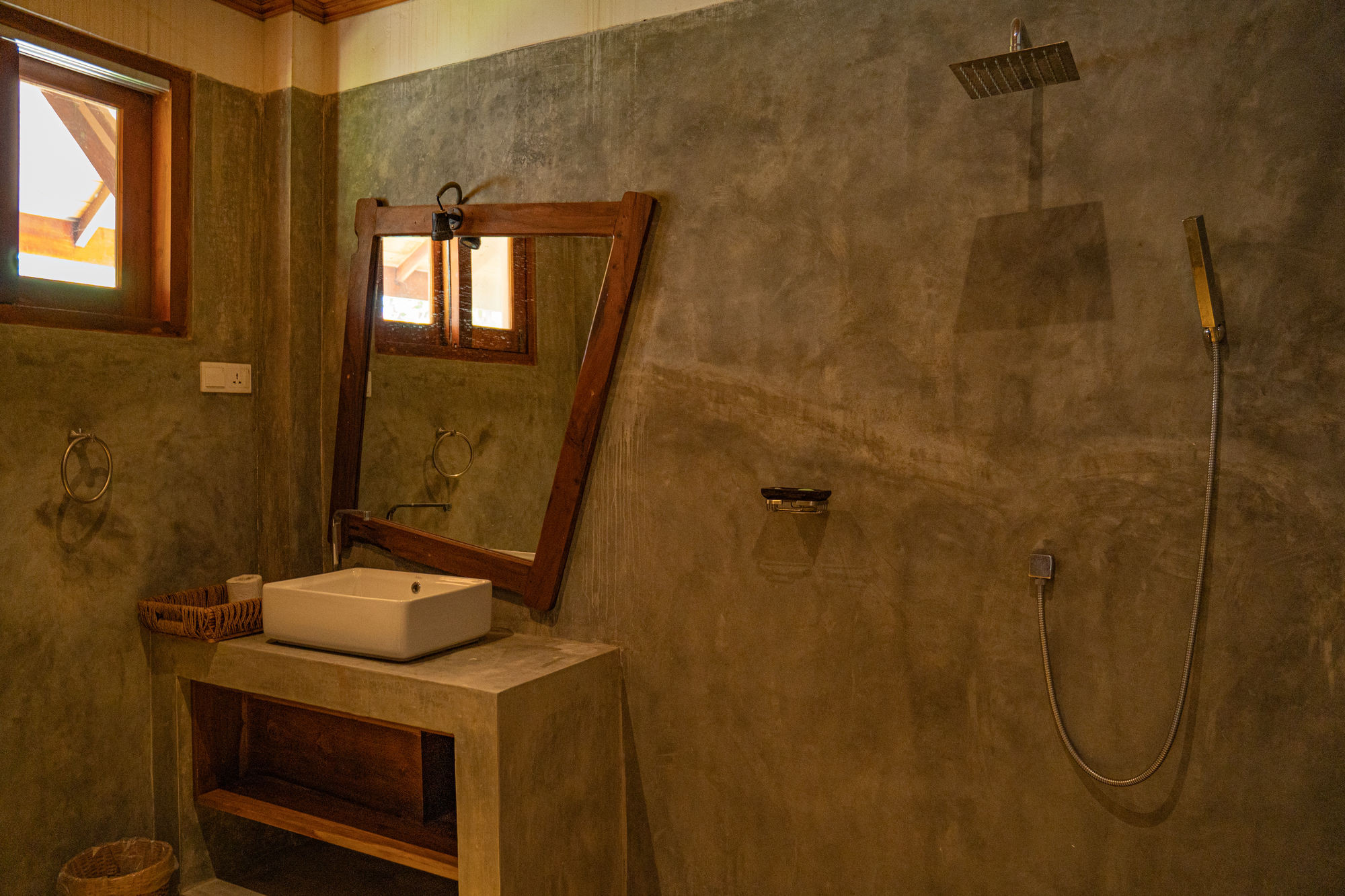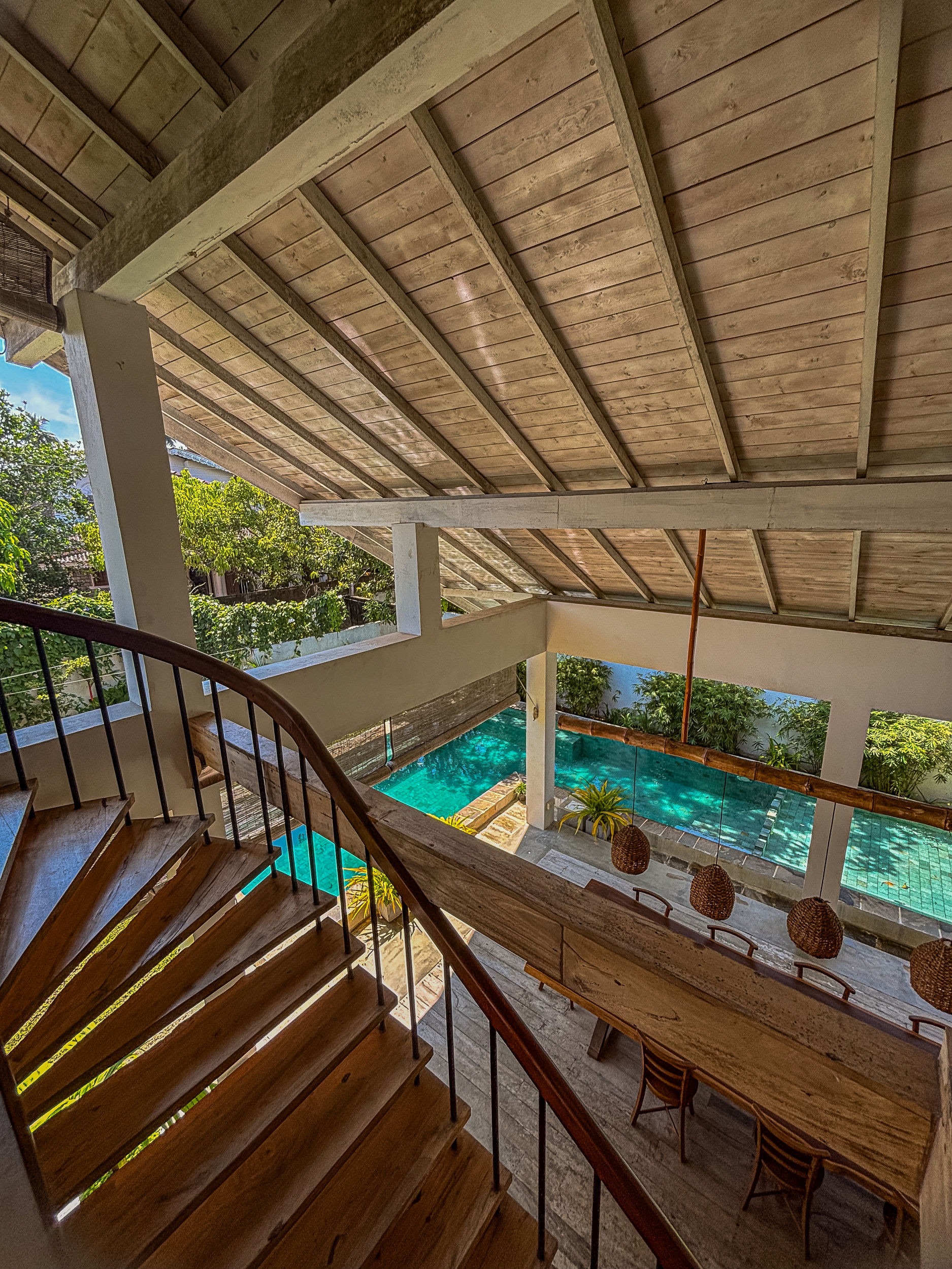 The villa is organized around four spacious suites, all equipped with queen-size beds and high-end bedding. Each room has its own private bathroom, some with outdoor showers in polished concrete that invite moments of relaxation in nature, alone or with a partner. The cathedral ceilings accentuate the feeling of space and freedom, while bringing freshness and clarity.