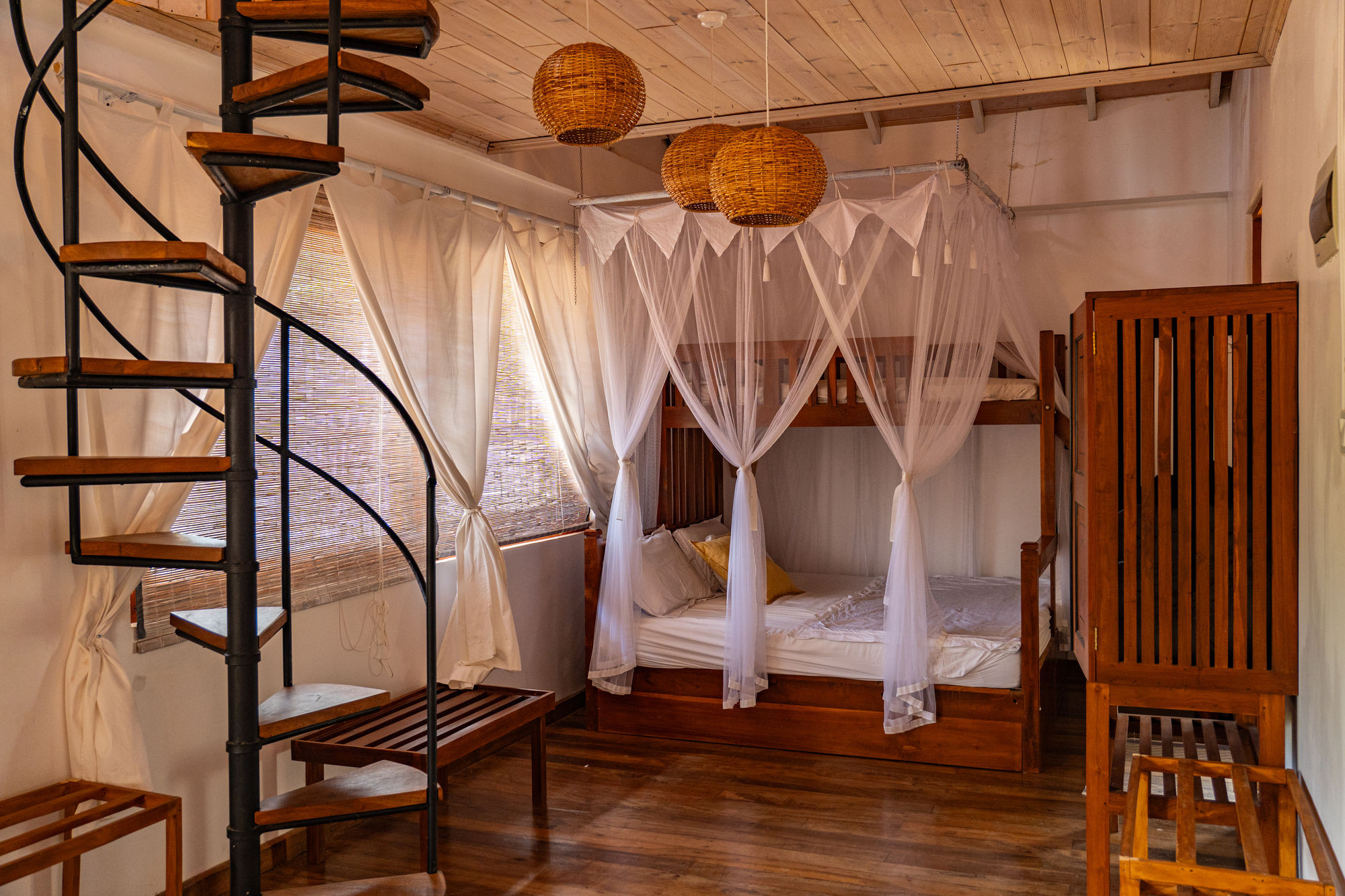 Nestled just a few minutes' walk from the beach, Villa Dream of Sri Lanka invites you to a timeless interlude. This sumptuous architect-designed villa elegantly blends the authenticity of local materials – wood, straw, rope, polished concrete – with a sober and refined modernity. From the moment you enter, you will be enveloped in a serene and warm atmosphere, where every detail seems designed to help you disconnect from everyday life.