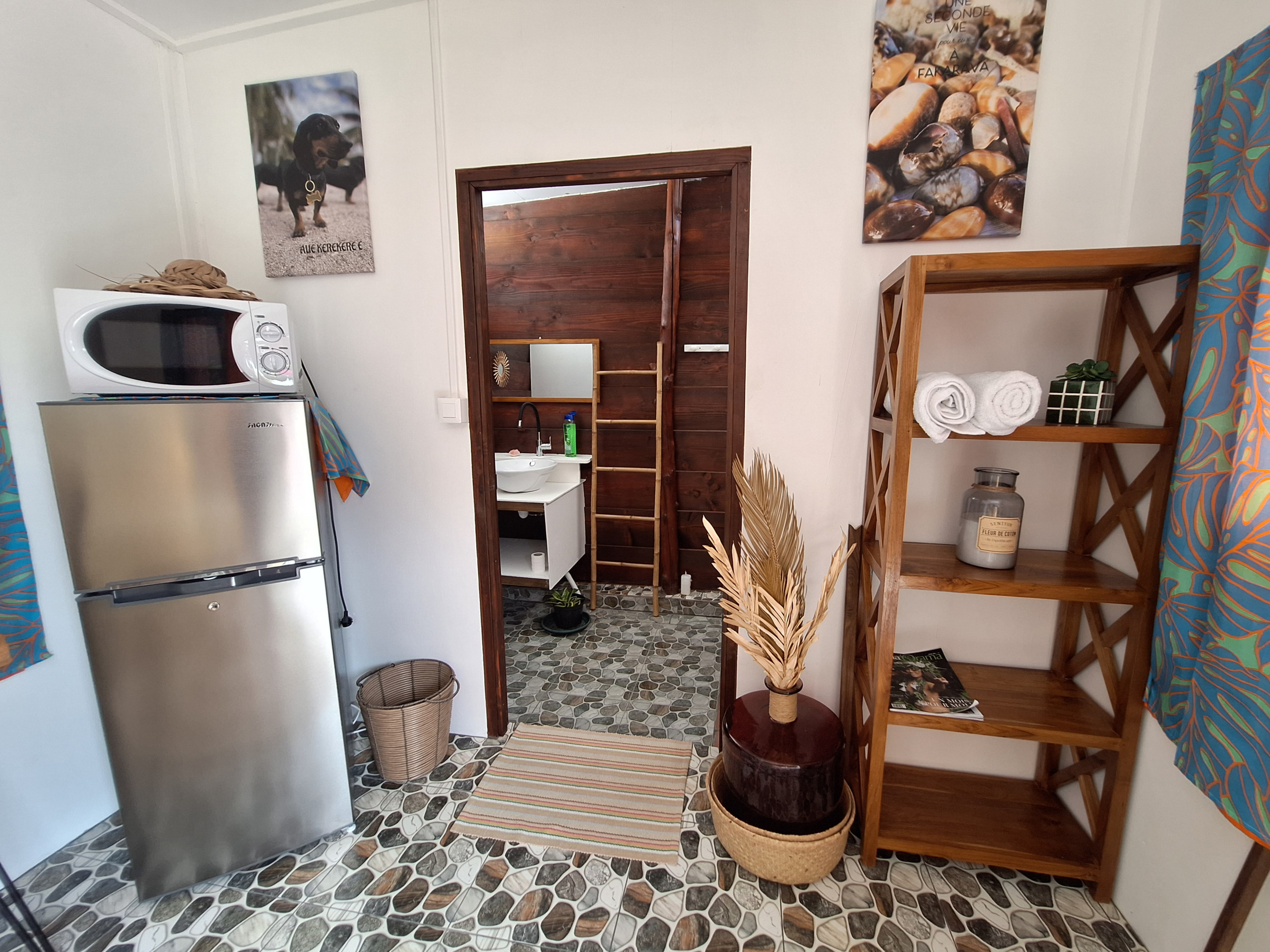 Para sus comidas, encontrará una cocina completamente equipada con refrigerador, horno, microondas, hervidor, cafetera e incluso un exprimidor de cítricos. El Wi-Fi está disponible gratuitamente para mantenerse conectado.