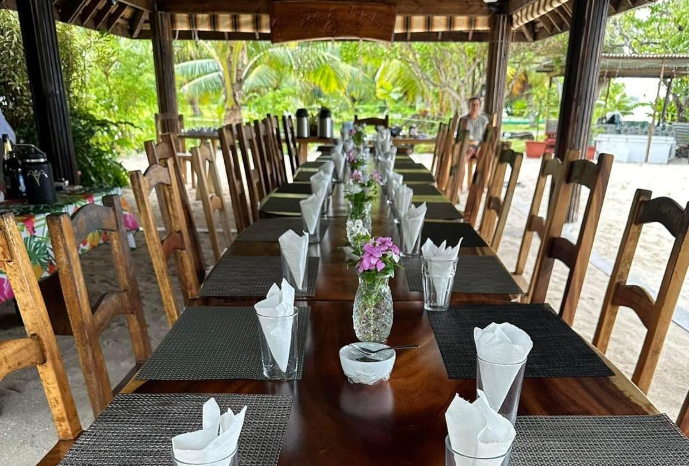 🍽️ Pensión media incluida: cada día, disfrute de un desayuno completo para comenzar bien el día, seguido por la noche de una cena amistosa preparada con productos locales, acompañada de canciones tradicionales polinesias para una inmersión auténtica.