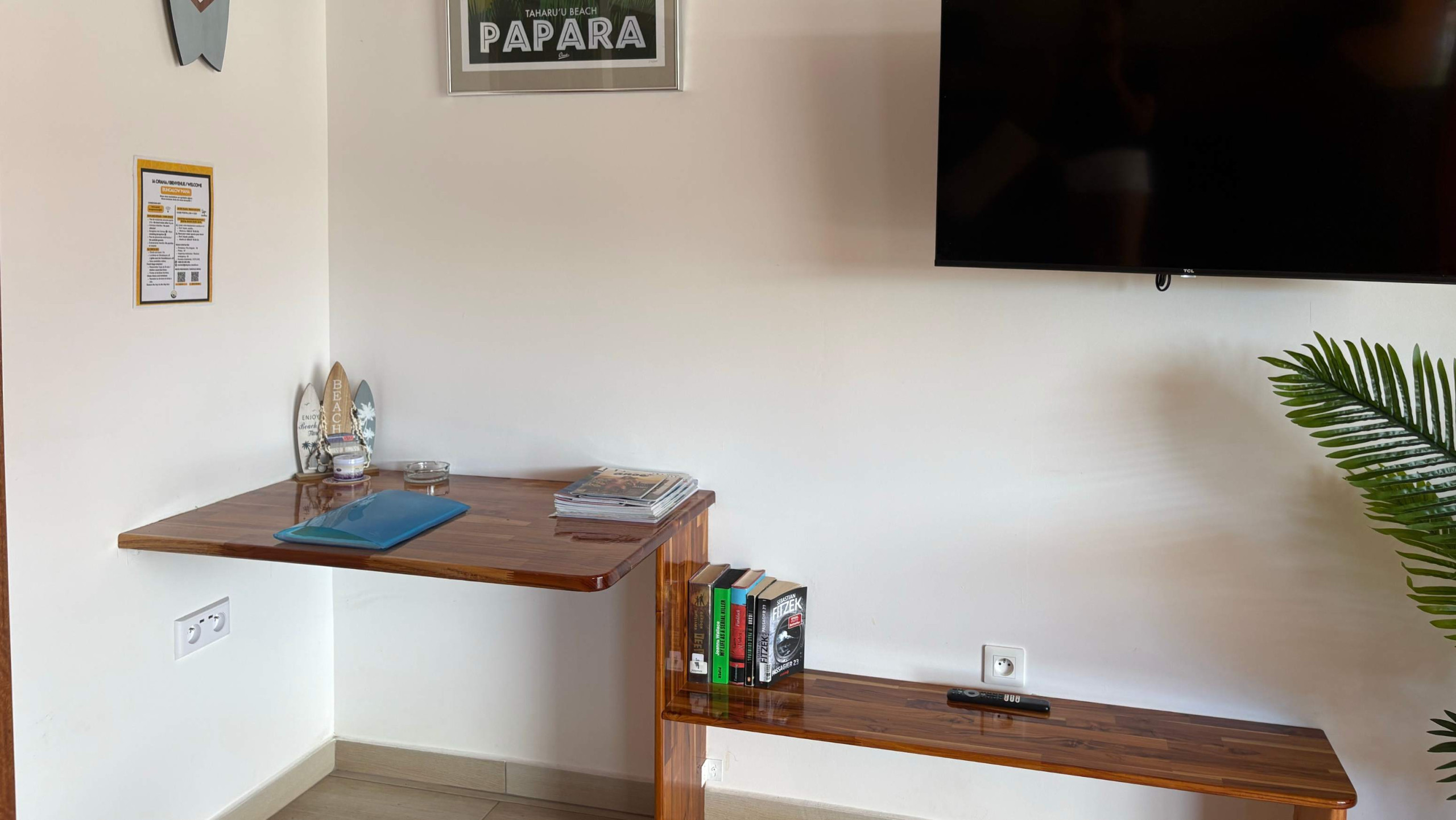 Ce bungalow était idéal pour quelques jours à Tahiti. La situation est plutôt centrale quand vous êtes véhiculés pour visiter l’île. Aussi, le bungalow est très bien équipé. Le confort est absolu et la propreté parfaite ! Je recommande vivement, cet endroit pour votre séjour. Accès à la plage par l’arrière, très joli spot, calme et peu voir pas, fréquenter donc agréable dis passer un petit moment tranquille.