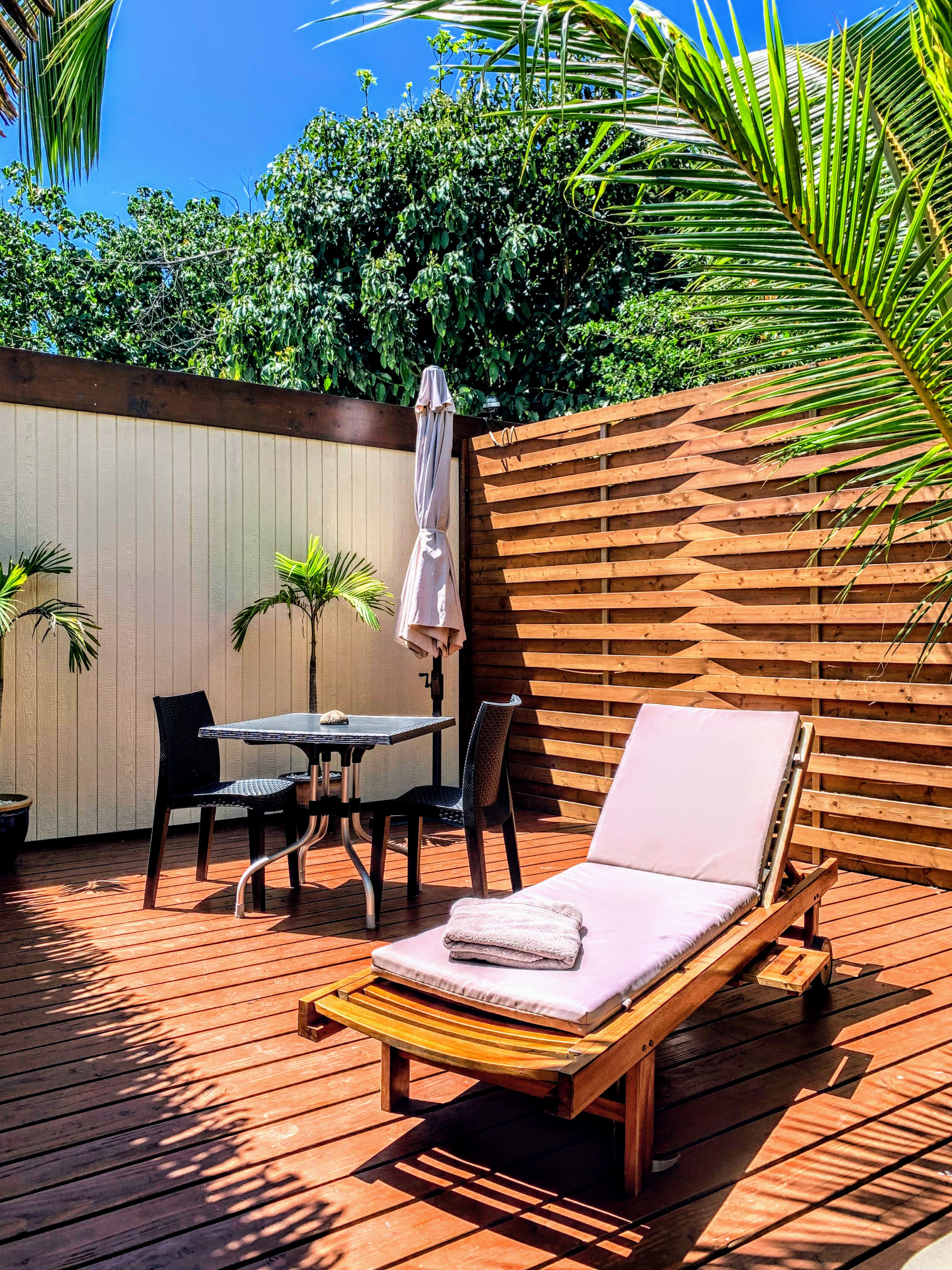 Just Relax Inn le ofrecerá un ambiente suave y acogedor. El bungalow tiene aire acondicionado y tiene capacidad para 4 personas cómodamente. Apreciará la elegancia del lugar mezclada con el encanto de las islas. La terraza privada y su jacuzzi serán sin duda tu lugar favorito. Un verdadero Jardín del Edén con ambientes vegetales y envolventes acompañará sus veladas.