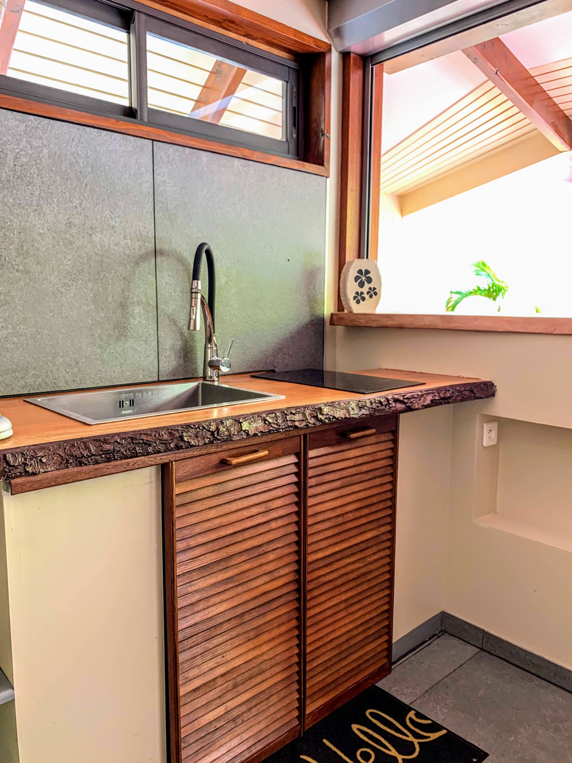 Just Chill Inn le ofrecerá un ambiente suave y acogedor. El bungalow tiene aire acondicionado y tiene capacidad para 4 personas cómodamente. Apreciará la elegancia del lugar mezclada con el encanto de las islas. La terraza privada y su jacuzzi serán sin duda tu lugar favorito. Un verdadero Jardín del Edén con ambientes vegetales y envolventes acompañará sus veladas.