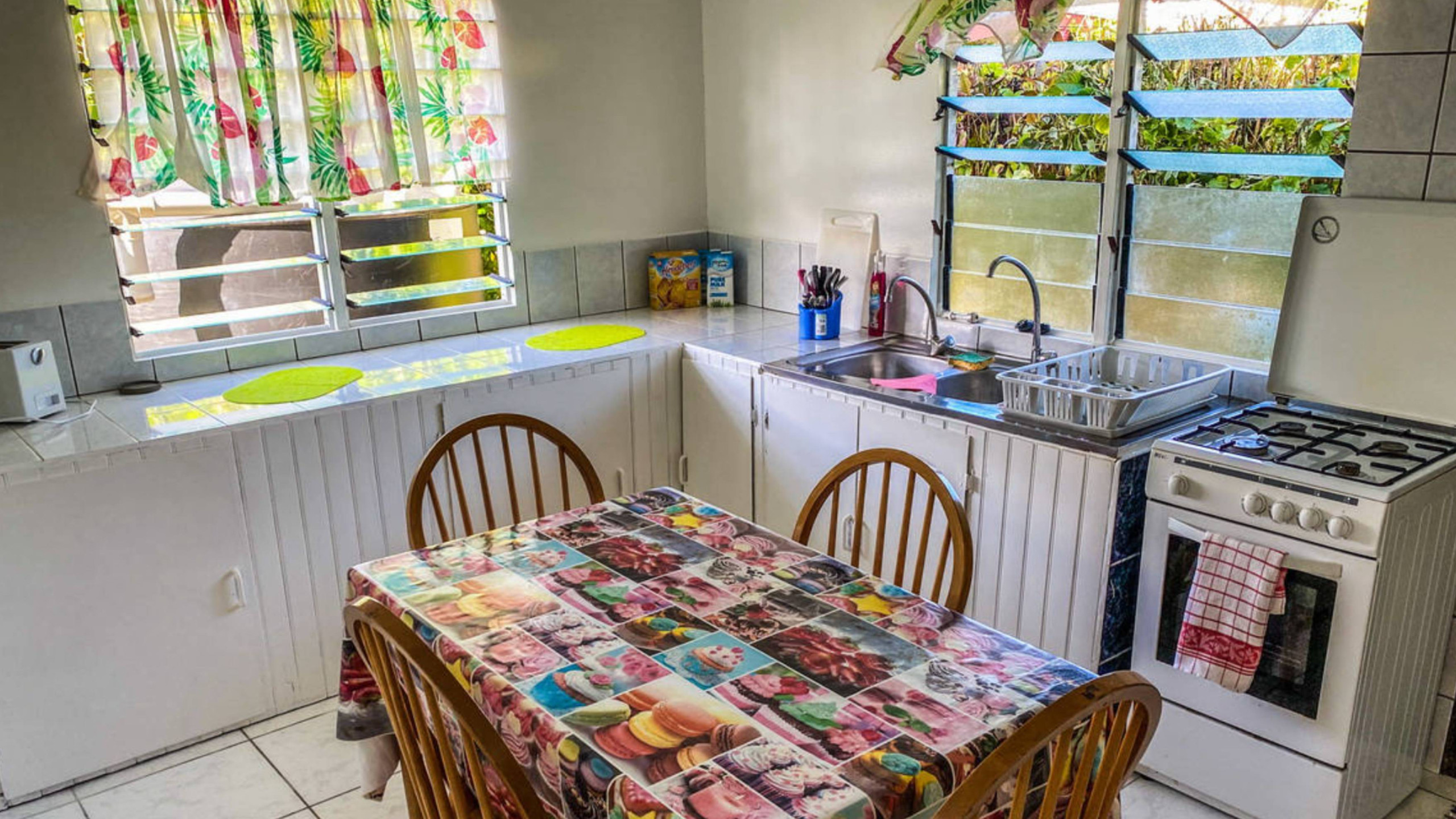 En el exterior, disfrutará de una terraza privada con vista a un jardín familiar, ideal para compartir sus comidas o saborear la tranquilidad del lugar. Para mayor comodidad, el wifi, los ventiladores, así como la ropa de casa y las toallas están incluidos. Hay una lavadora disponible en el exterior (servicio de lavandería: 1000 XPF).