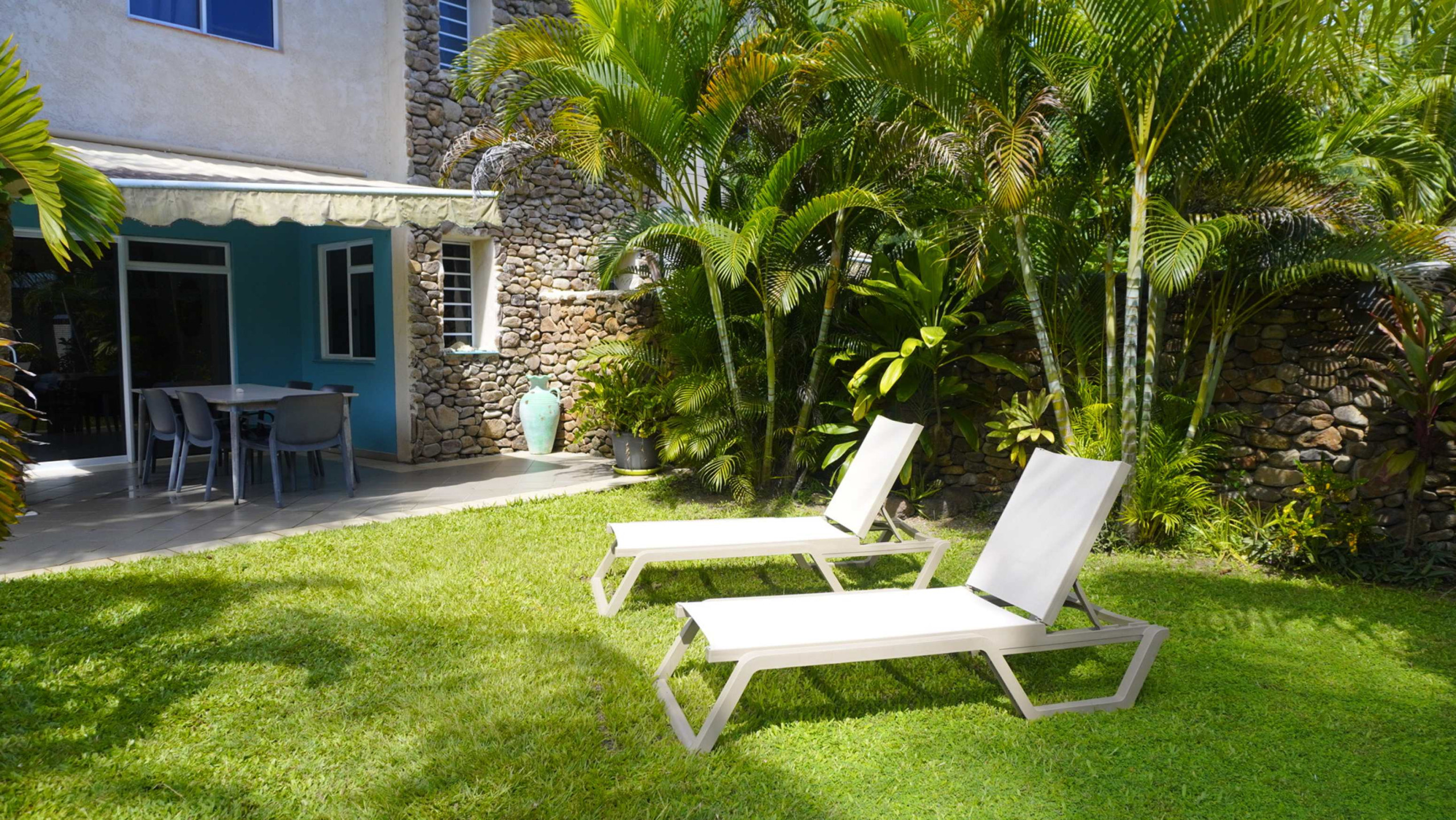 Para comidas al aire libre, hay una barbacoa a su disposición, acompañada de muebles de jardín cómodos, incluyendo tumbonas y sillas, para momentos agradables bajo el sol tropical.