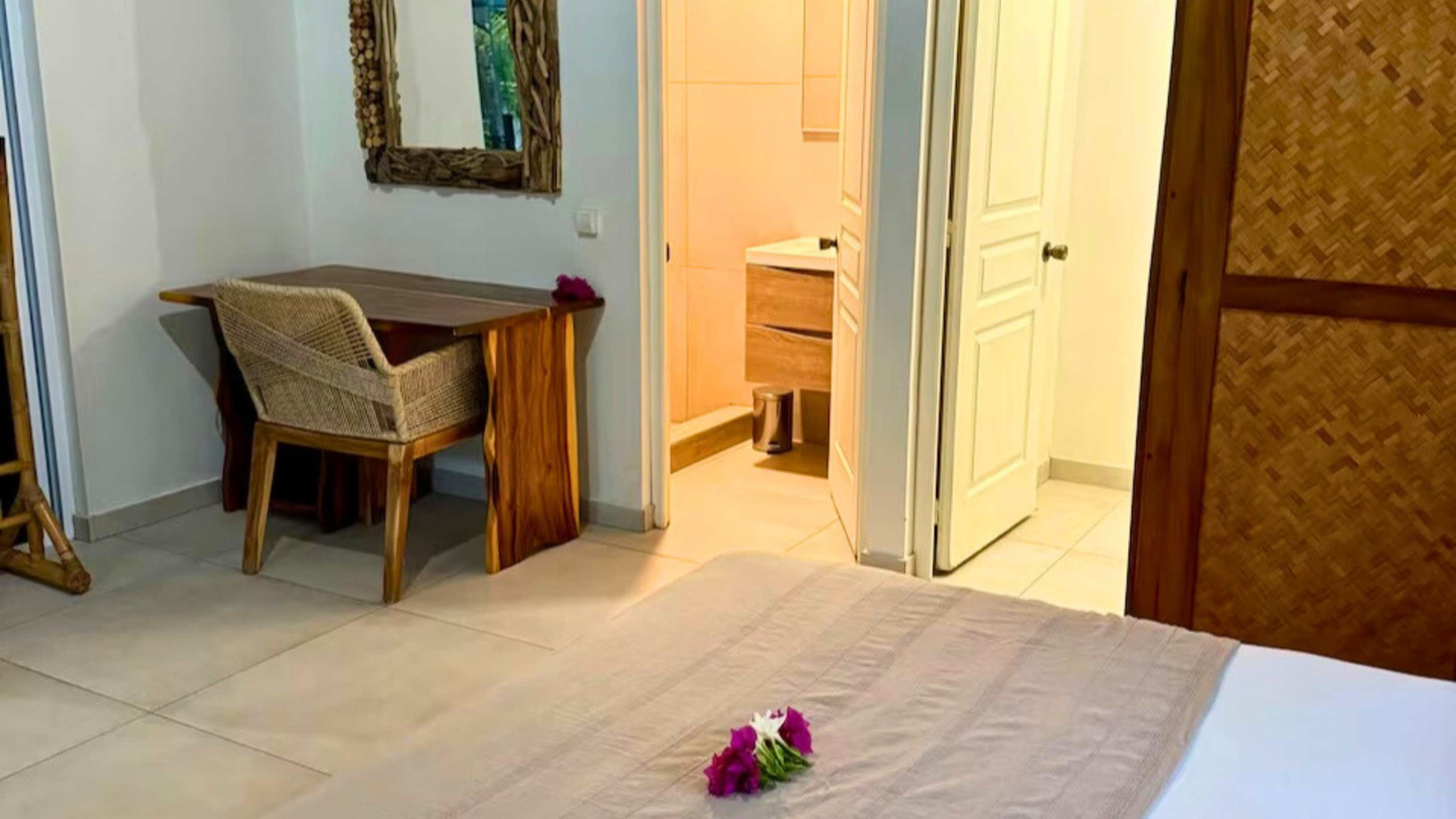 Con una superficie de 150 m², la casa y el bungalow adyacente disponen de 2 habitaciones con aire acondicionado con 2 camas king size en la casa y 1 habitación con aire acondicionado con cama queen size con baño adjunto en el bungalow.