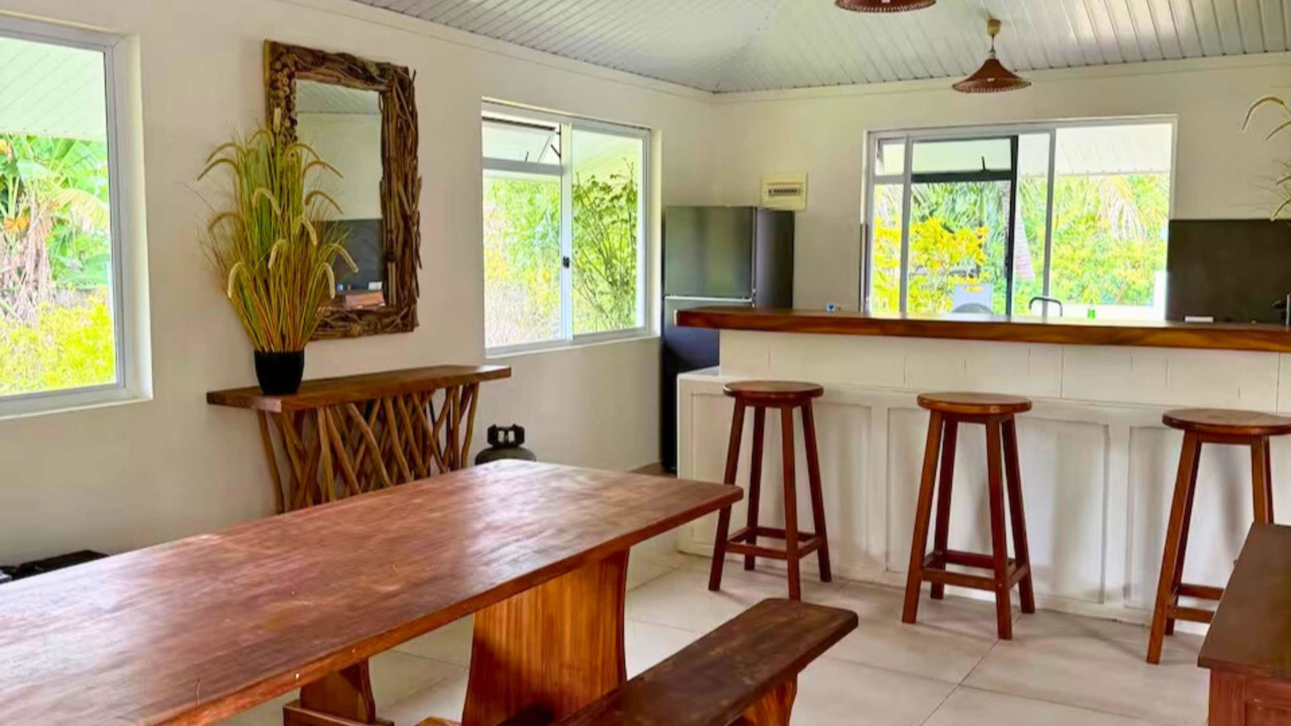 Situada en el barrio del faro de Temae a solo 15 minutos en coche del muelle de ferrys, la vivienda es una encantadora casa de vacaciones junto al mar. Ideal para una estancia en familia o con amigos en Moorea. Espaciosa y confortable, puede acoger hasta 7 personas en un entorno tranquilo y tropical.