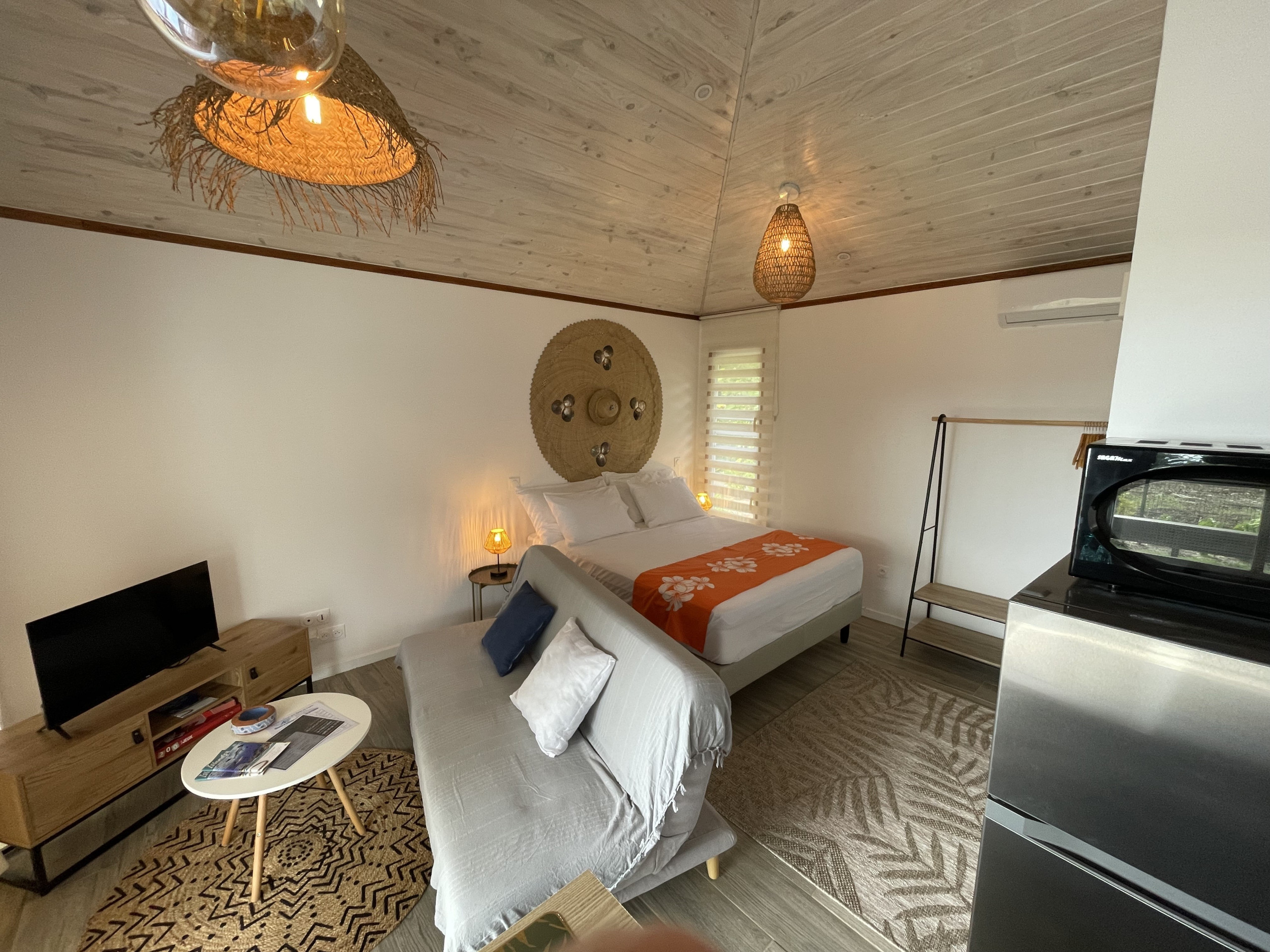 Con una superficie de 35 m², cada bungalow consta de un espacio principal luminoso que incluye: