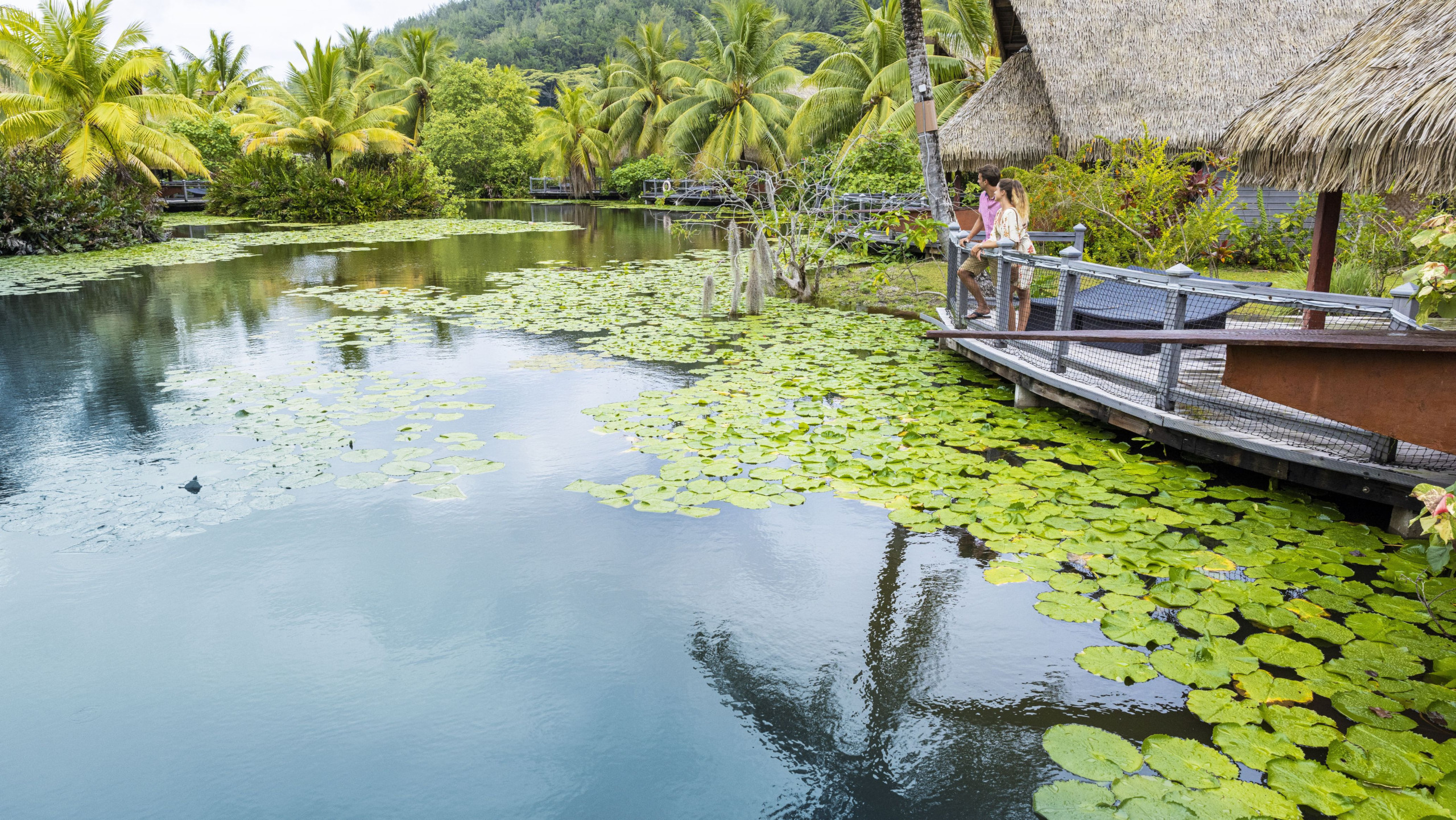 Bungaló en la orilla de la laguna