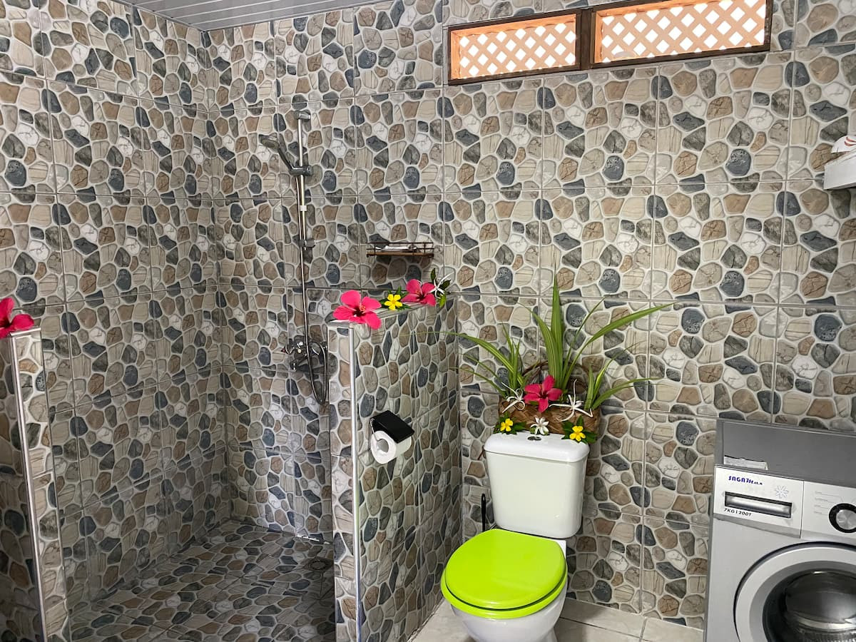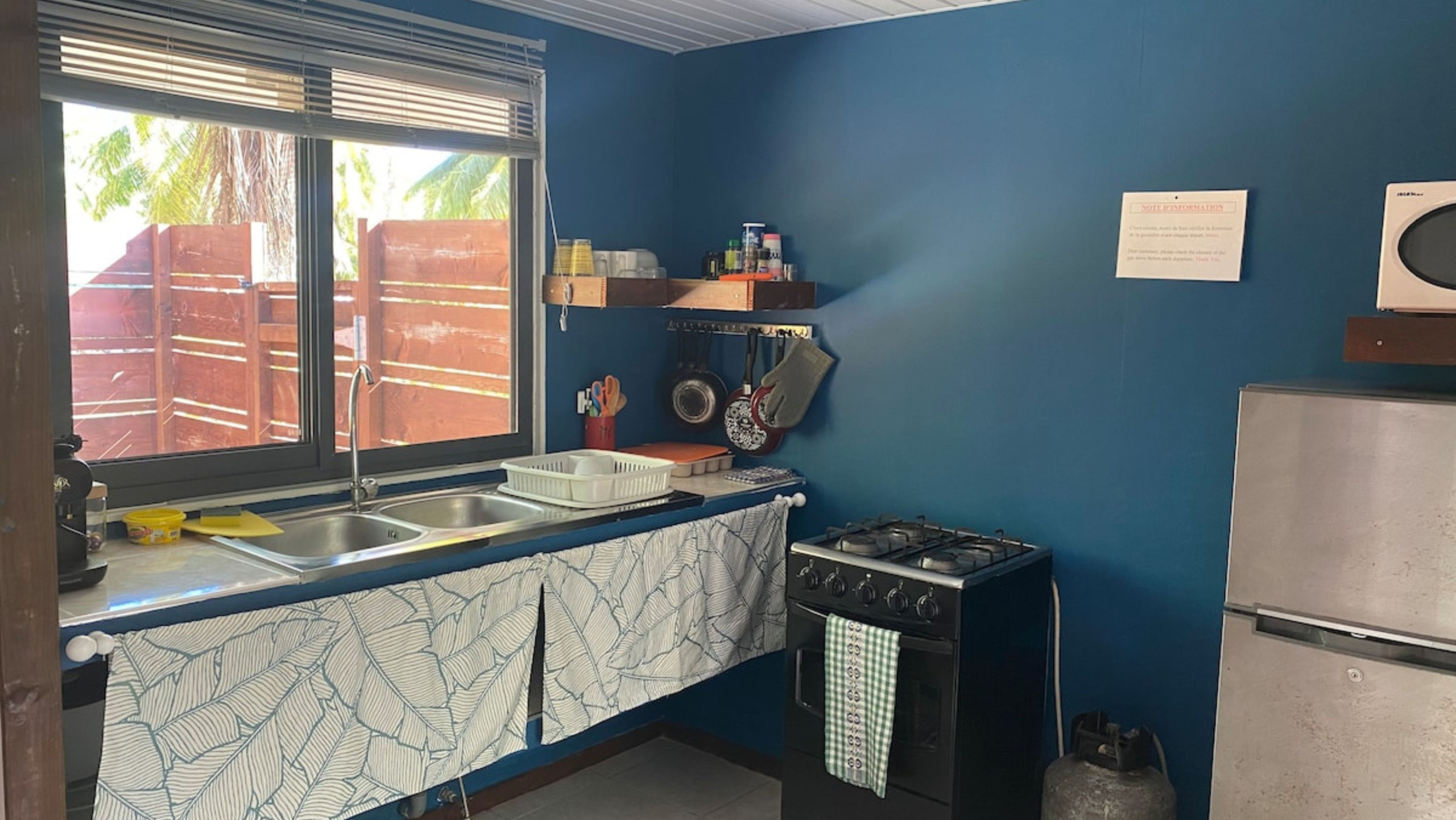 El alojamiento acoge hasta dos personas y dispone de un espacio de vida abierto que incluye una cama doble queen-size cómoda. El baño interior, equipado con agua caliente, se complementa con una ducha exterior ideal para refrescarse después de la playa. La cocina equipada le permite preparar sus comidas de forma autónoma, mientras que la pequeña terraza cubierta es perfecta para disfrutar de un café o simplemente disfrutar de la suavidad de las noches. También dispone de wifi directamente en el bungalow, así como de una lavadora y un rincón para tender la ropa para mayor comodidad.