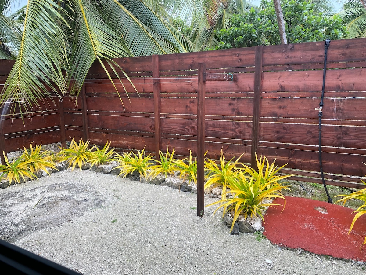 En el exterior, una terraza privada da al jardín de cocoteros, perfecta para relajarse después de un día de exploración. Un kayak se ofrece gratuitamente, y puede alquilar bicicletas, scooters o coches para recorrer la isla a su propio ritmo.