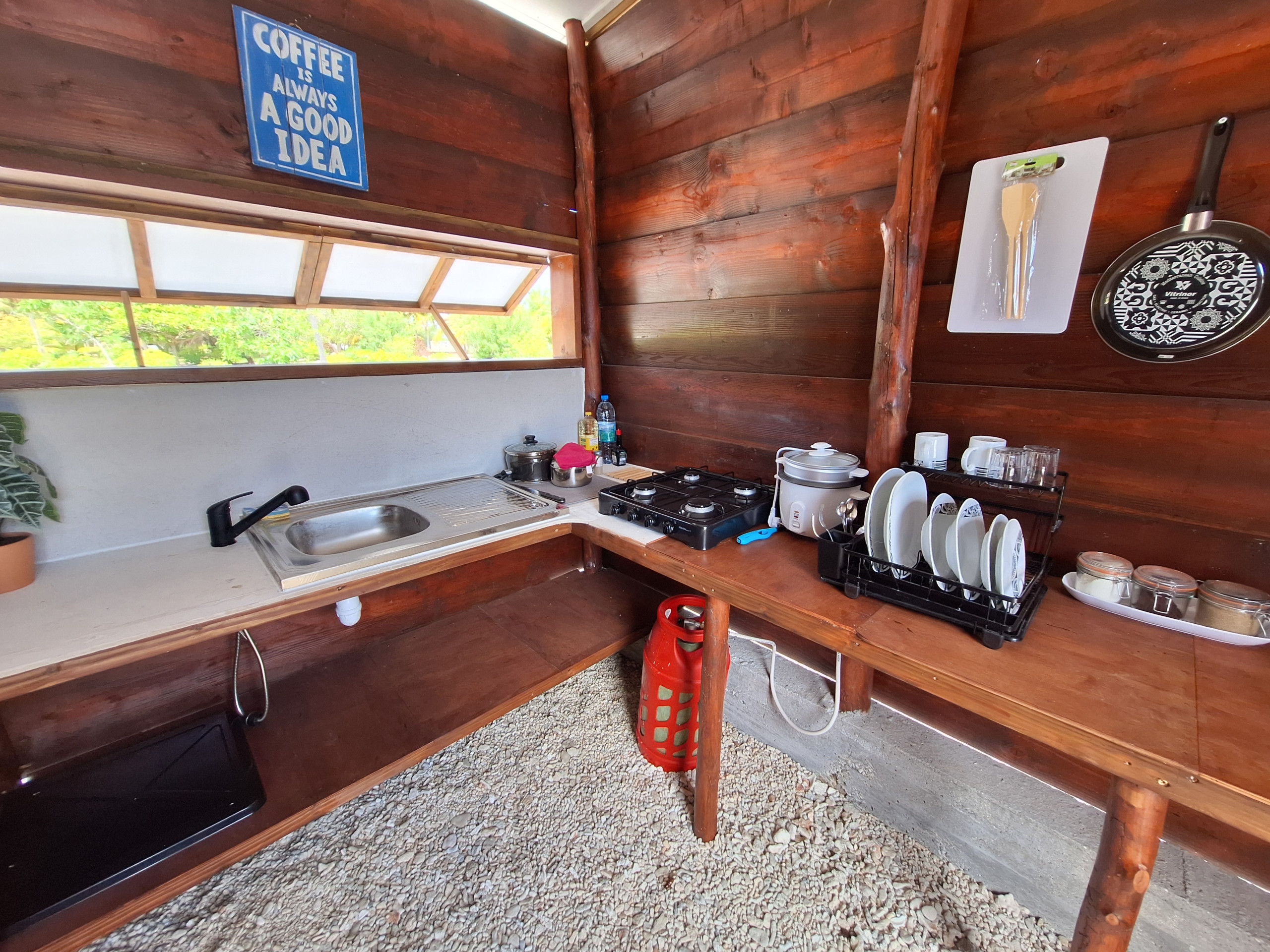 Ideale per 2 persone, si trova su un terreno condiviso con altri due bungalow e la casa del proprietario. Avrete sicuramente l'occasione di incontrare i nostri amici a quattro zampe (5 adorabili bassotti e alcuni maiali) e di scoprire l'ampio orto della proprietà.