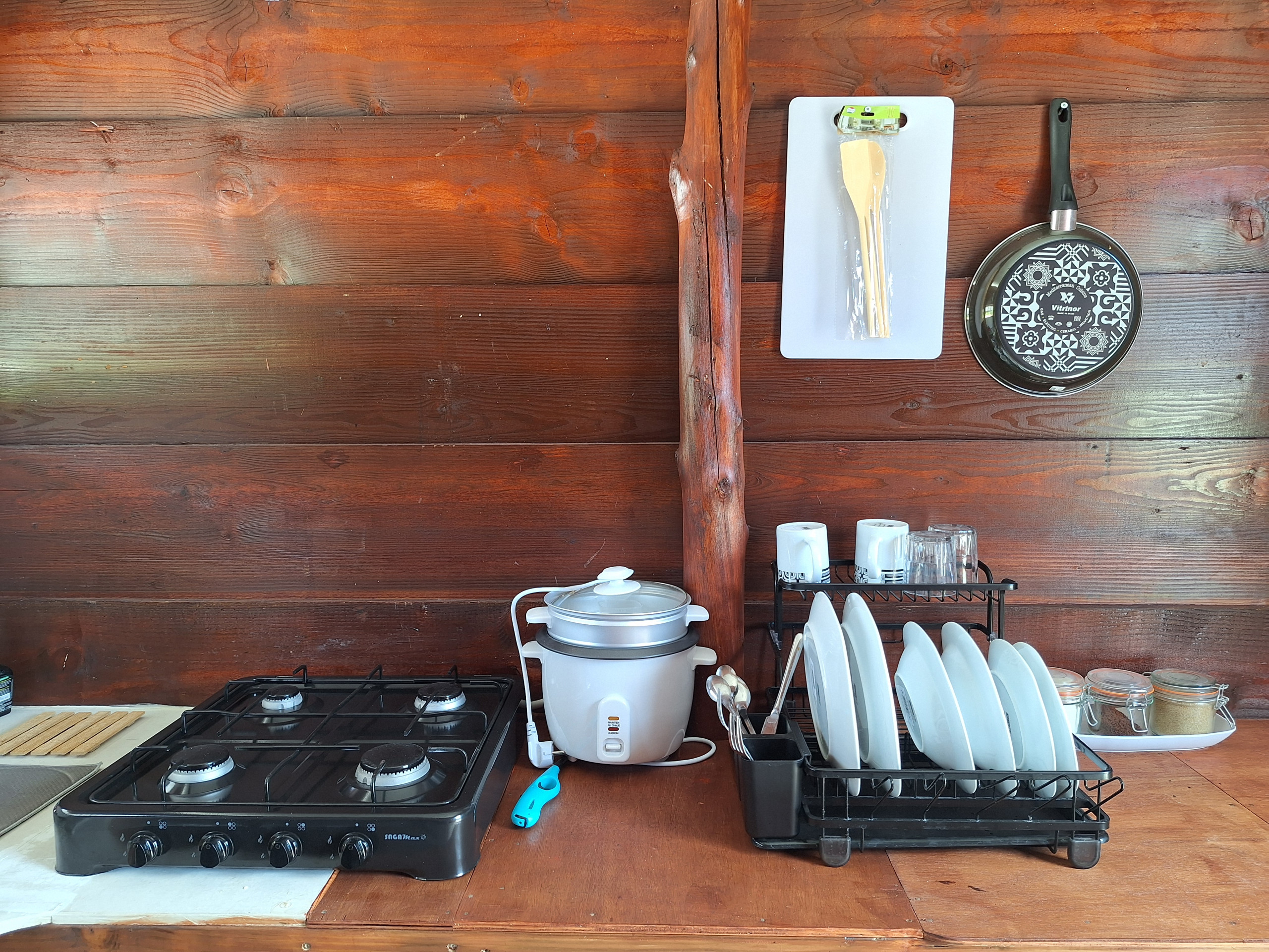 Per i vostri pasti, troverete una cucina completamente attrezzata con frigorifero, forno, microonde, bollitore, macchina da caffè e persino uno spremi agrumi. Il Wi-Fi è disponibile gratuitamente per rimanere connessi.