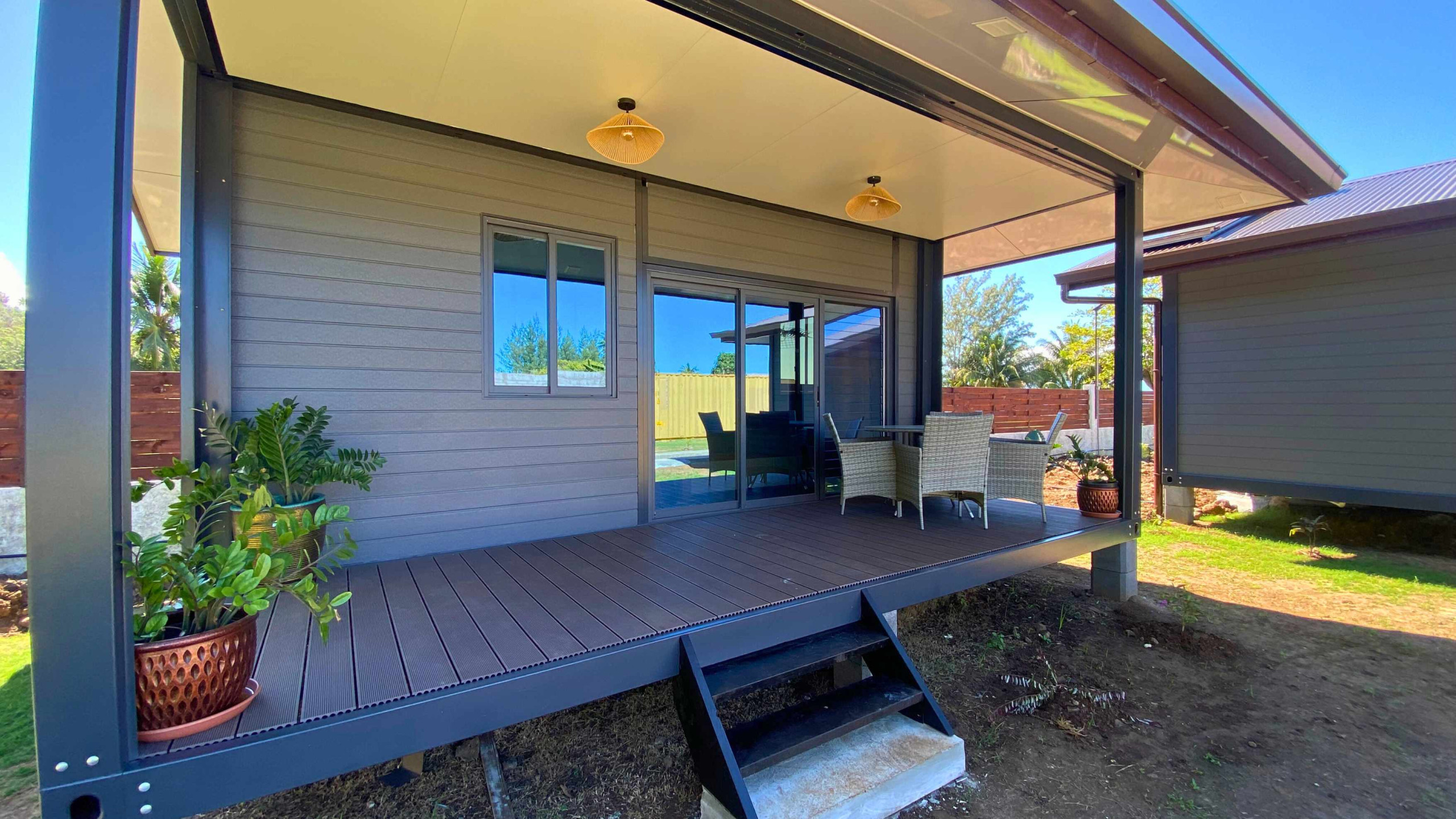 Prolunga le tue giornate sulla tua terrazza in legno coperta, ideale per consumare i pasti godendoti la brezza marina.