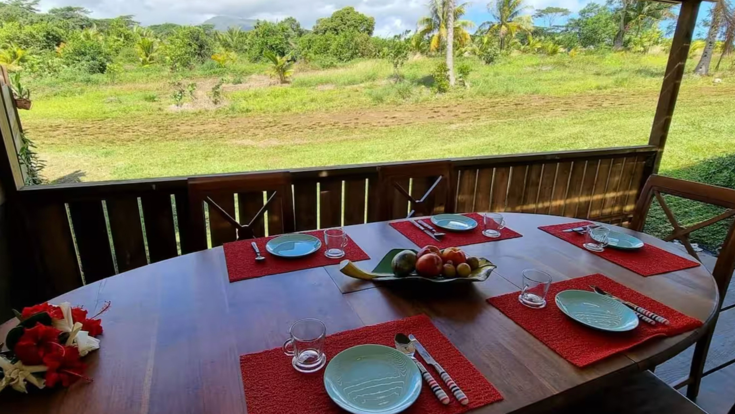 Ogni mattina, una colazione inclusa viene servita al fare poté'e, per iniziare la giornata in un ambiente riposante tra palme da cocco e canti di uccelli.