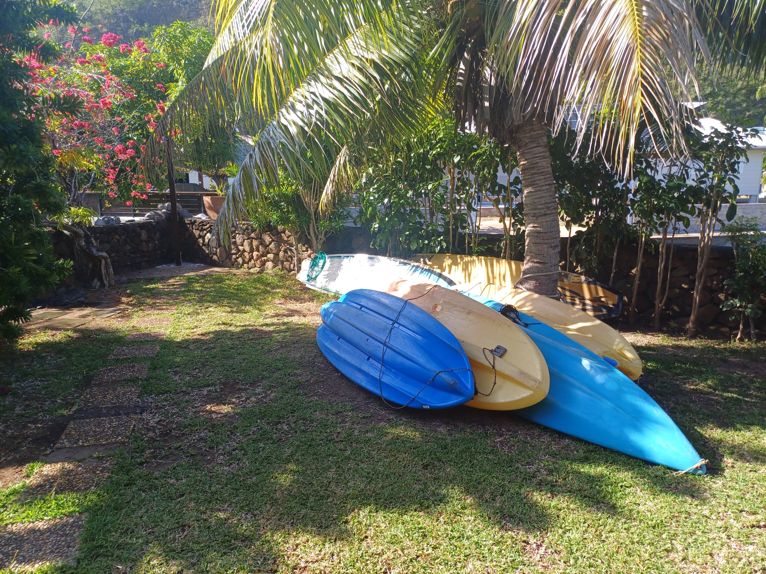 Les kayaks pour être libres de visiter et snorkler à notre rythme. Le Fare grand, agréable.
