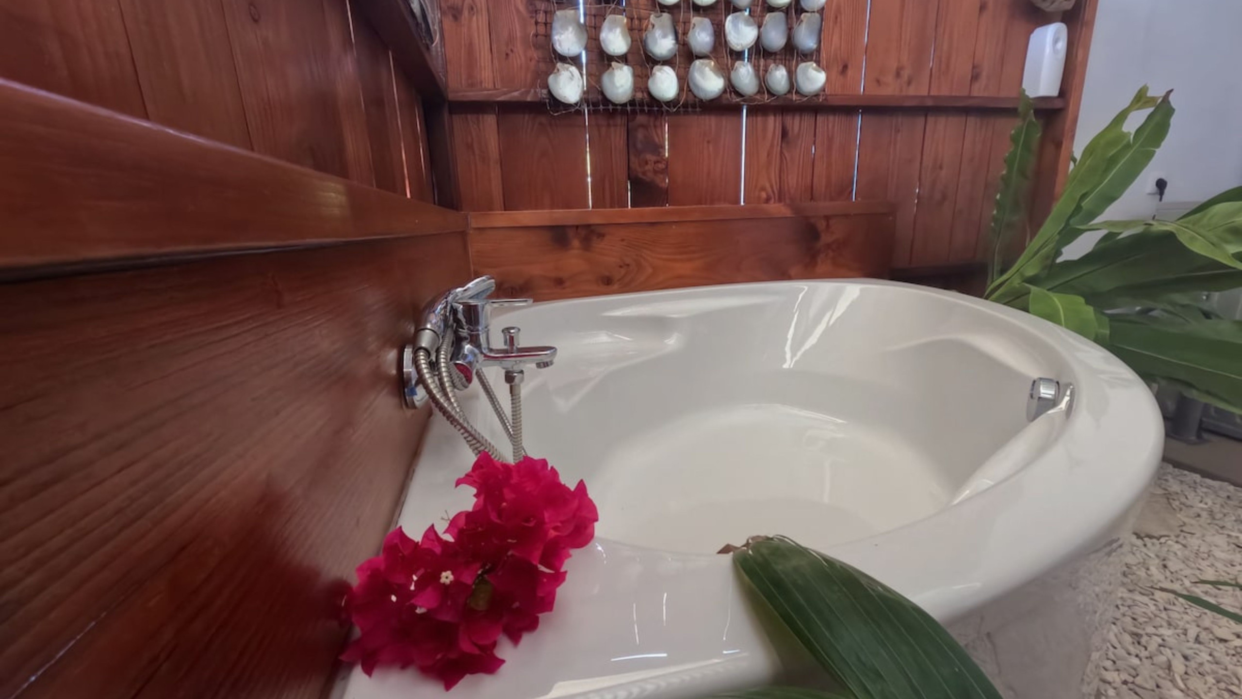 Il bungalow può ospitare 2 adulti e 2 bambini. Comprende un letto matrimoniale, un divano letto matrimoniale, un bagno moderno con doccia e servizi igienici, nonché un angolo cottura attrezzato per preparare i pasti in completa autonomia. All'esterno, un piccolo terrazzo permette di condividere i pasti o di godersi la dolcezza delle serate polinesiane.