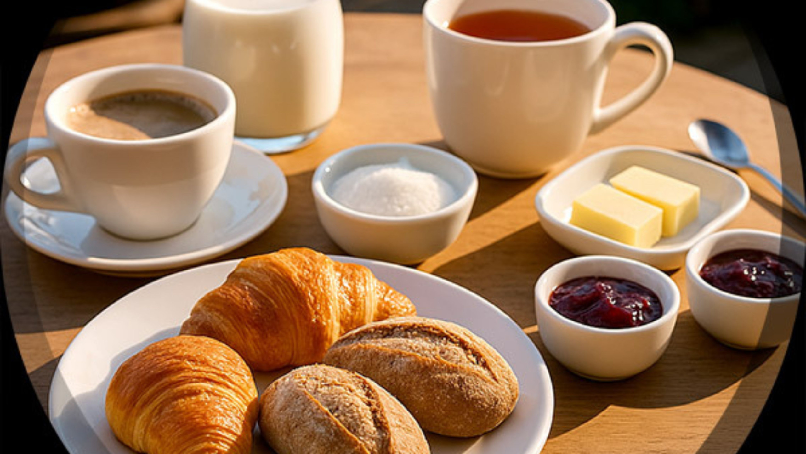 Gli ingredienti per preparare la vostra colazione sono forniti gentilmente: 🥐 2 mini-sfogliatelle 🥖 1 baguette "tradizione con semi" 🧈 Burro dolce e semisalato 🍓 Marmellate artigianali ☕ Tè, caffè, latte, zucchero