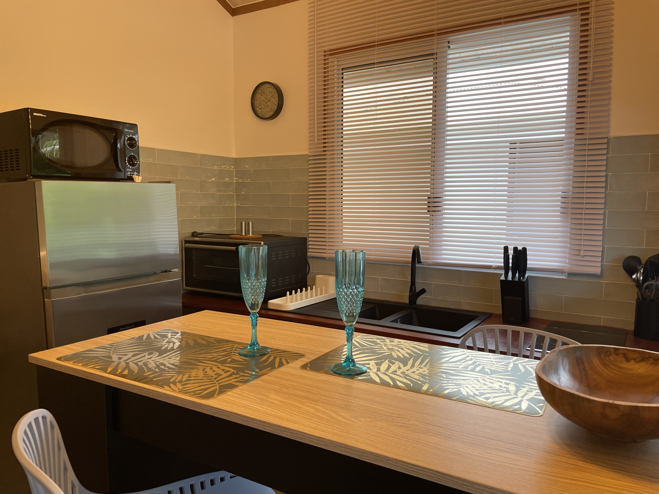 Questo alloggio combina comfort moderno, eleganza e autenticità polinesiana. Ideale per un soggiorno di coppia, offre tranquillità e intimità, ciascuno senza affaccio diretto e circondato da un giardino privato.