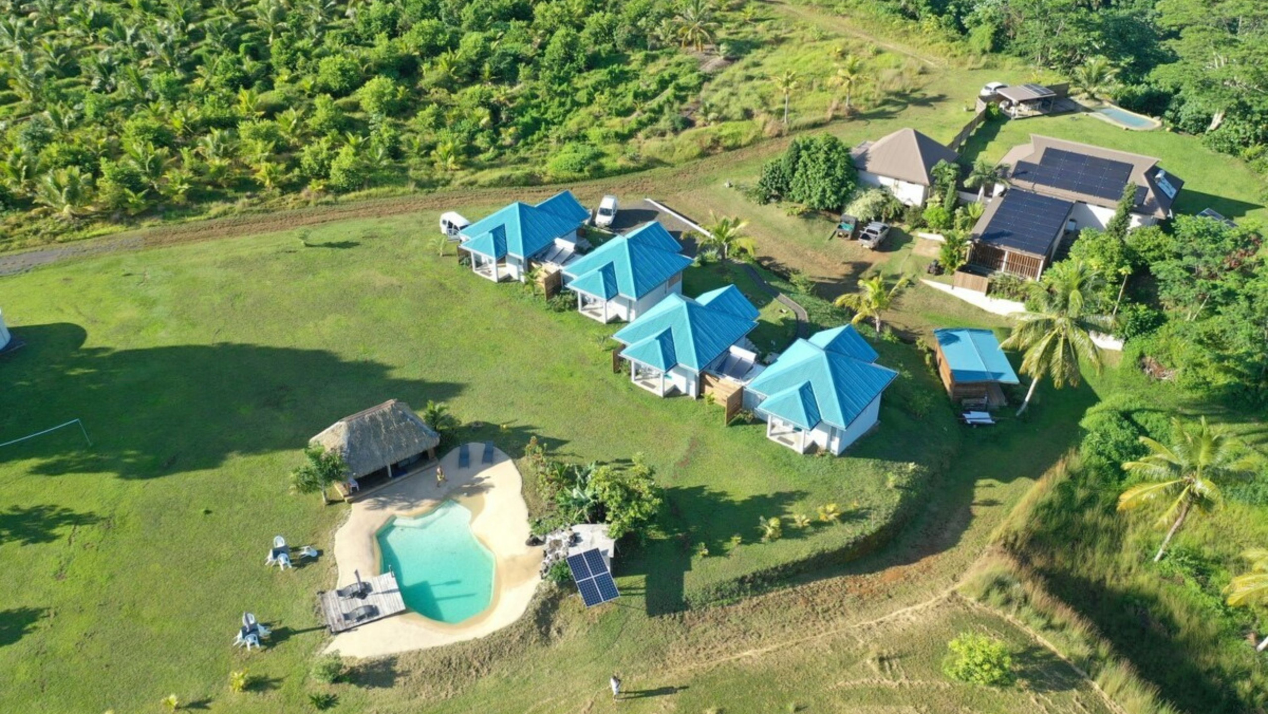 Avrete libero accesso alla piscina paesaggistica con cascata, nonché al fare poté'e, uno spazio conviviale che comprende un salotto, un grande tavolo e una cucina estiva - ideale per condividere un momento in tutta semplicità.