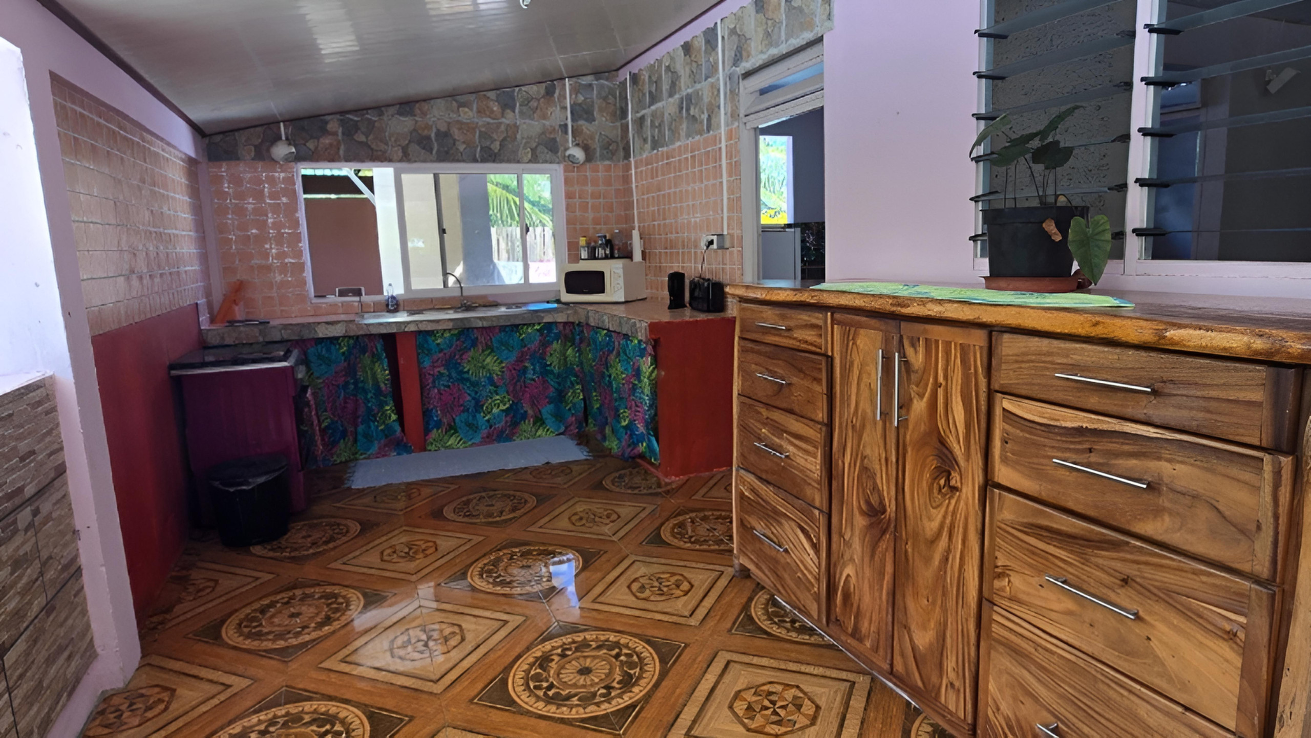 Il bagno interno garantisce comfort e intimità, mentre la cucina attrezzata, situata all'esterno, è condivisa con un secondo alloggio e vi permette di preparare facilmente i vostri pasti. Un piccolo terrazzo privato, nonché un grande fare poté tradizionale (grande patio locale) offrono spazi dove rilassarsi godendosi il contesto naturale. Qui, il giardino... è la spiaggia: sabbia fine, brezza marina e accesso diretto alla laguna.