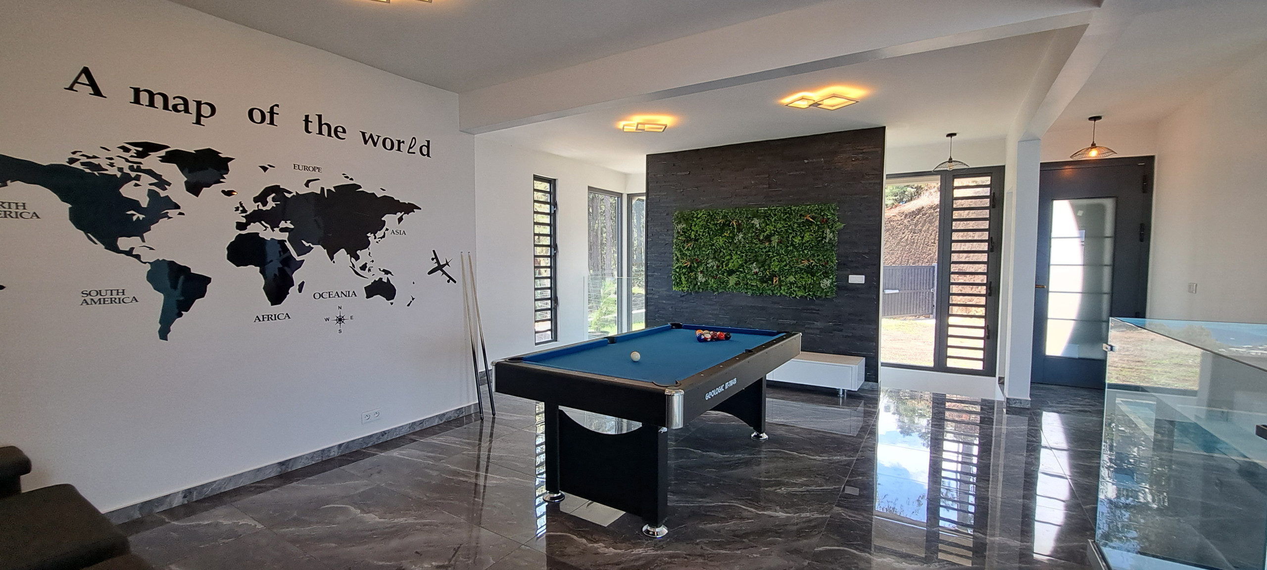 Potrete godere della piscina privata con vista sul mare e sul giardino curato. Sono presenti anche attrezzature per il tempo libero (tavolo da ping-pong, biliardo). Una terrazza e un balcone completano gli spazi esterni.