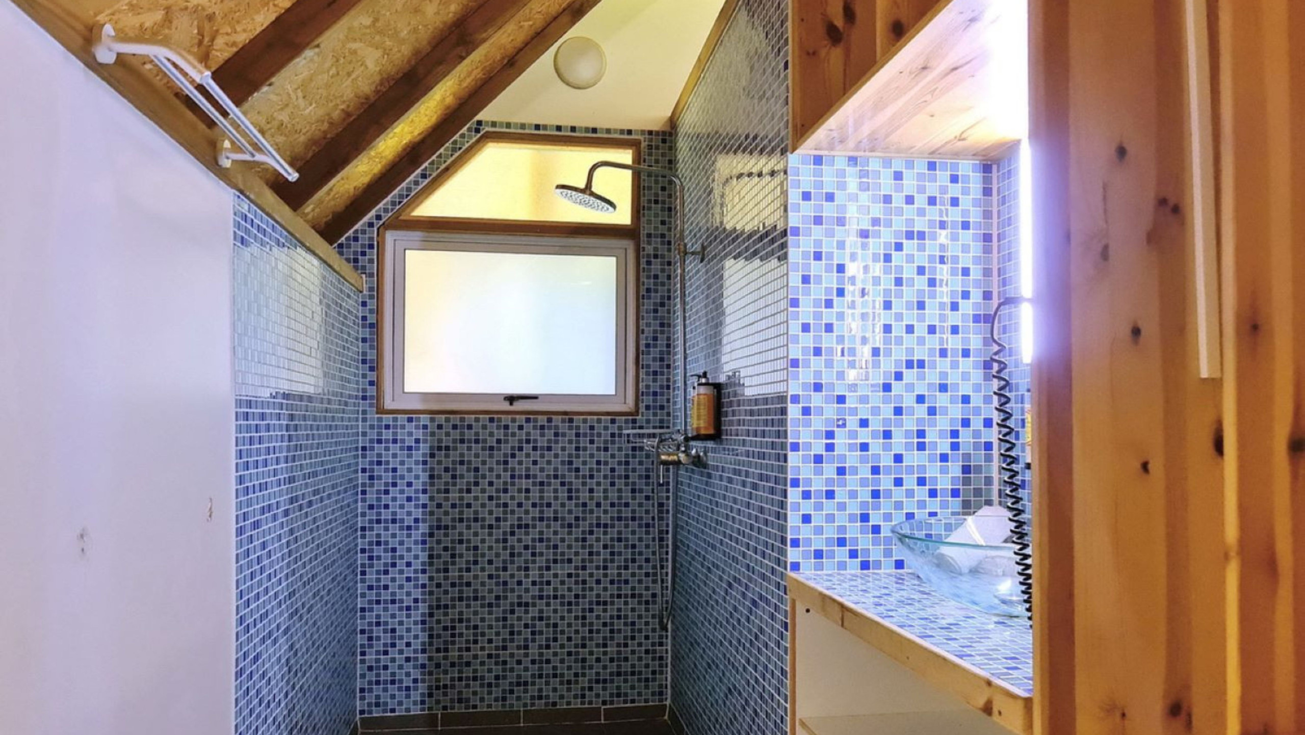 La salle de bain privative dispose d’une douche, d’eau chaude et de serviettes fournies.