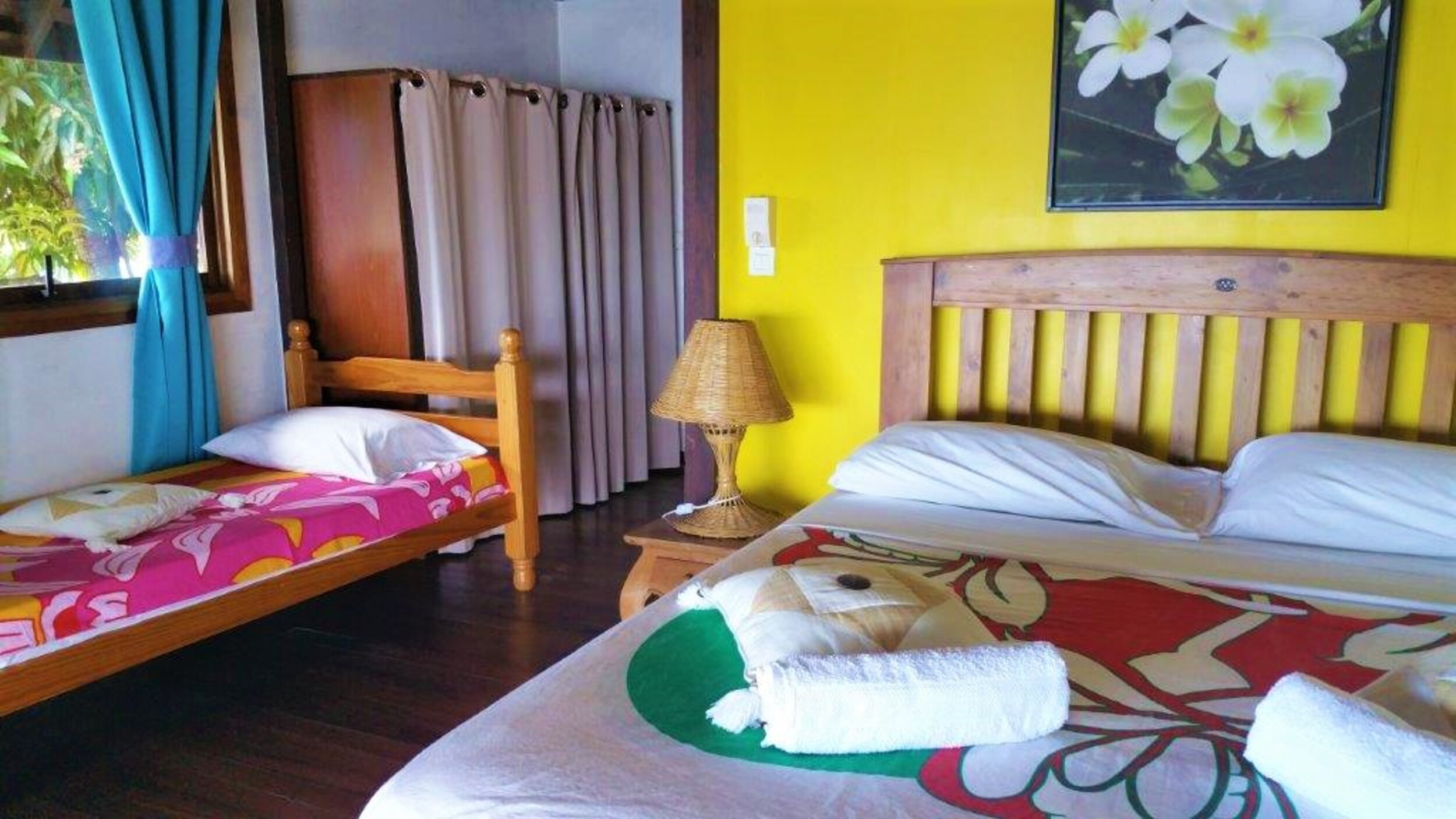 Le bungalow Tiamao Auti est un hébergement traditionnel en bois de 40m2 pouvant accueillir jusqu’à 3 personnes et disposant d’une terrasse donnant sur le jardin luxuriant.