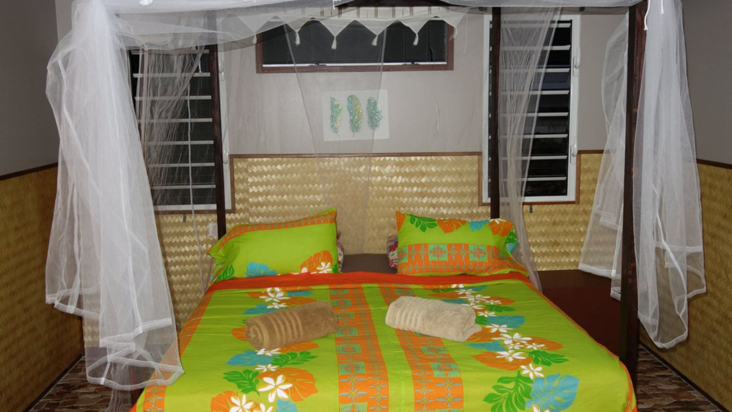 Ce bungalow familial, typiquement polynésien, combine confort et authenticité, dans une atmosphère paisible entre cocotiers et sable blanc.