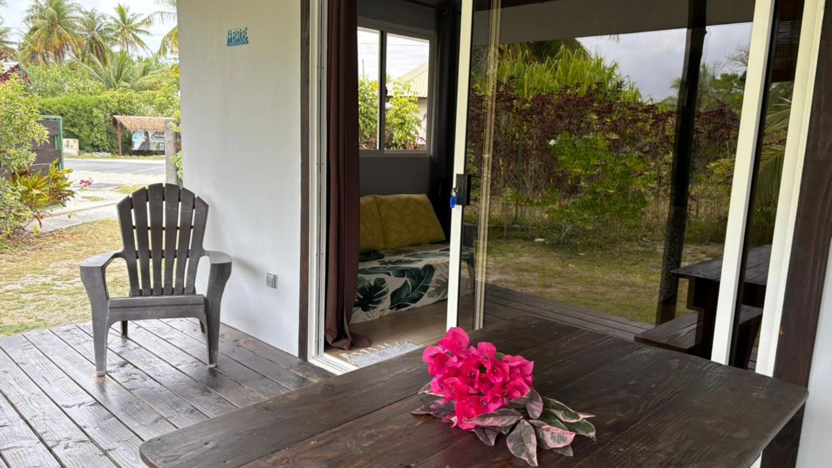 Le bungalow peut accueillir 2 adultes et 2 enfants. Il comprend un lit queen size, un canapé-lit double, une salle de bain moderne avec douche et toilettes, ainsi qu’une kitchenette équipée pour préparer vos repas en toute autonomie. À l’extérieur, une petite terrasse permet de partager vos repas ou de profiter de la douceur des soirées polynésiennes.