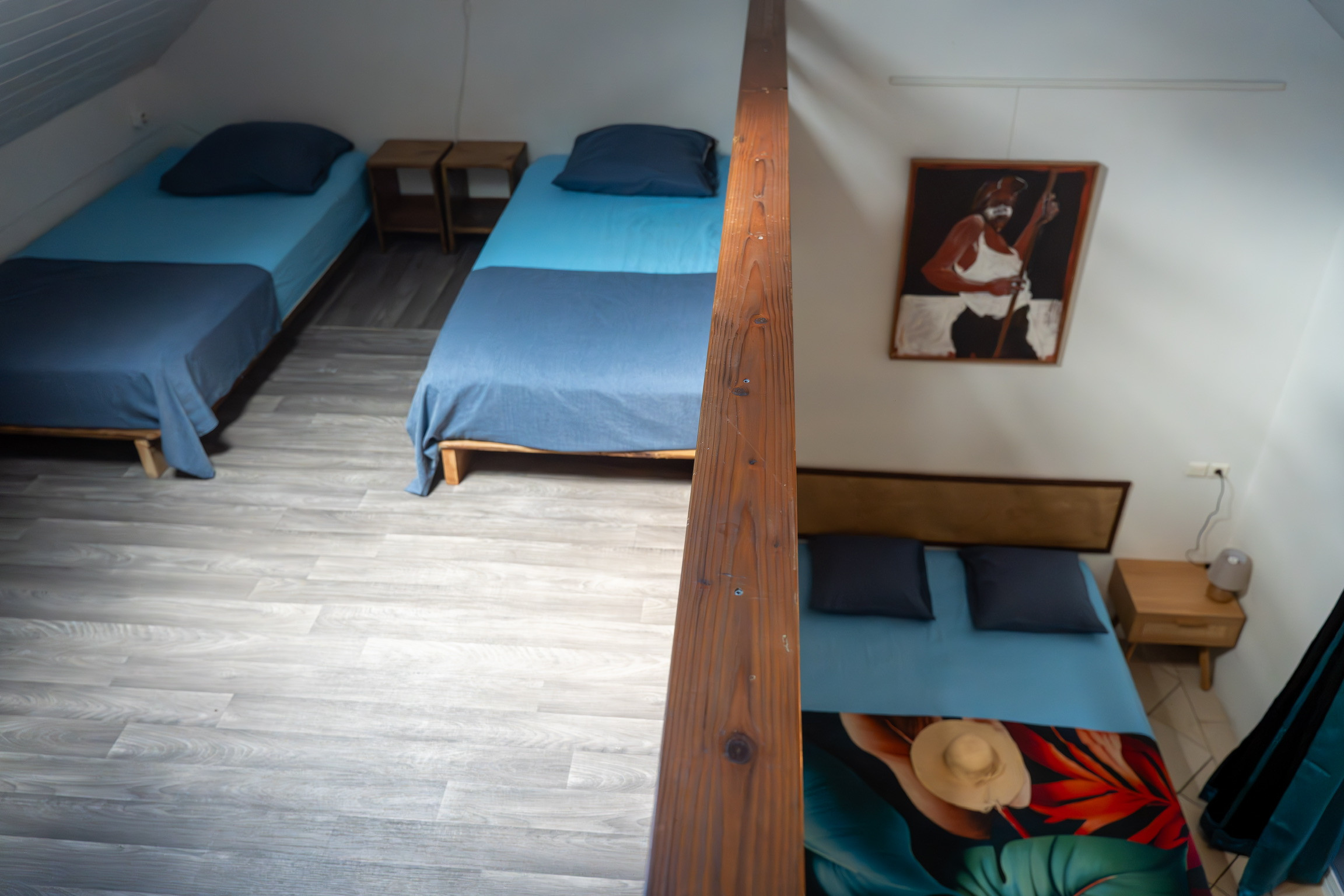 Le séjour comprend 2 lits simples avec possibilité de les assemblés et 1 lit queen size au niveau de la mezzanine.
