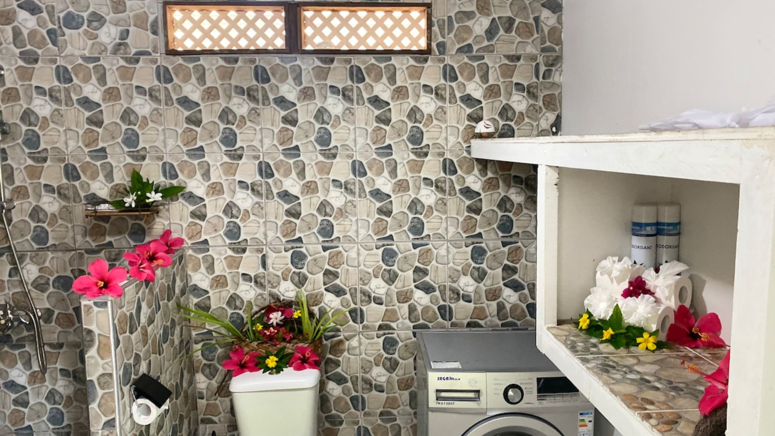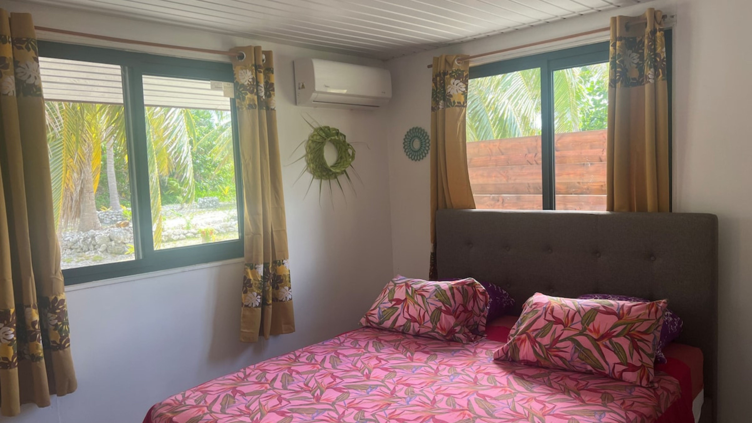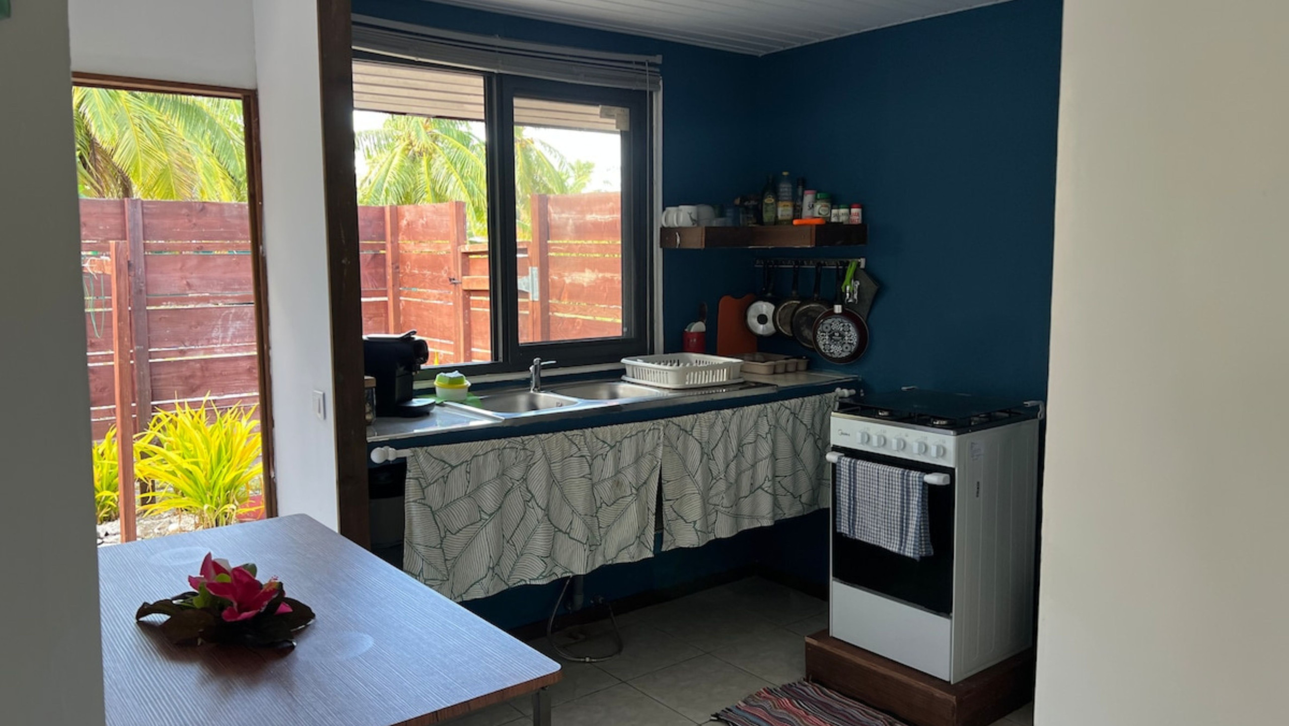 Les transferts en taxi peuvent être organisés en amont par la propriétaire. Il suffit de communiquer vos horaires de vol à l’avance. Le tarif est de 1500 XPF par personne et par trajet, à régler en espèces sur place.
