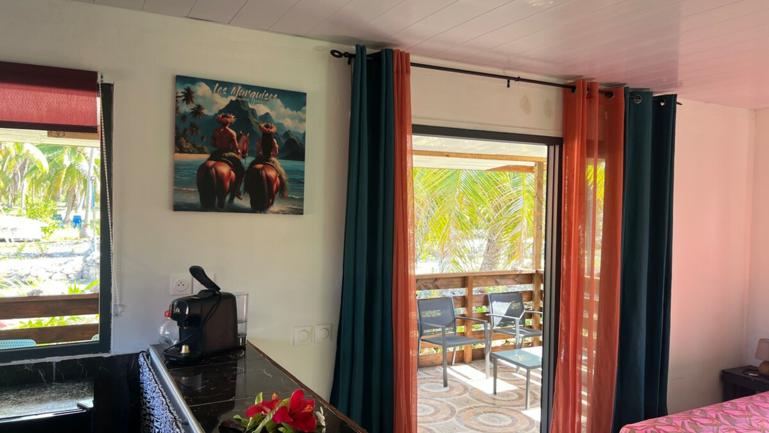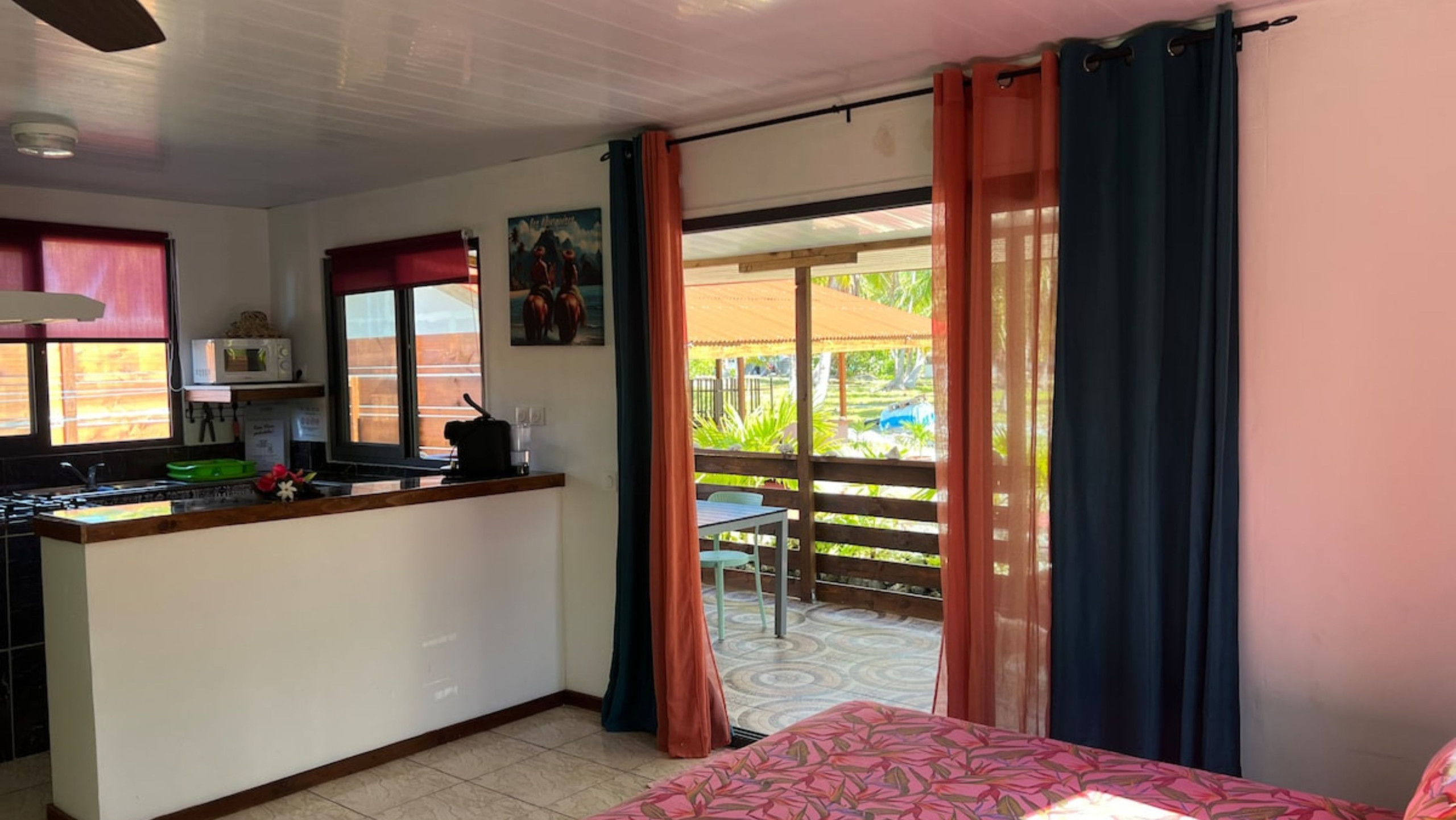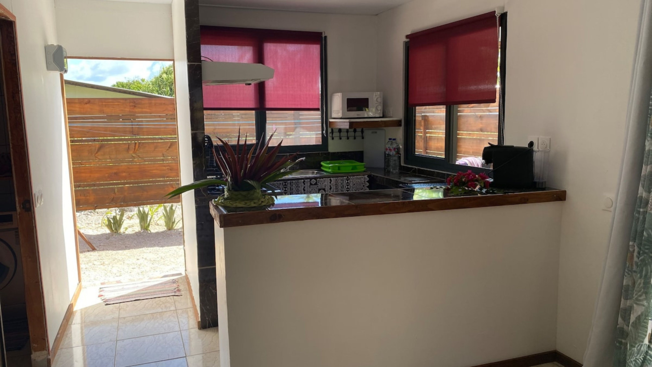 Les transferts en taxi peuvent être organisés par la propriétaire si les horaires de vol sont communiqués à l’avance. Le tarif est de 1500 XPF par personne et par trajet, à régler sur place en espèces.