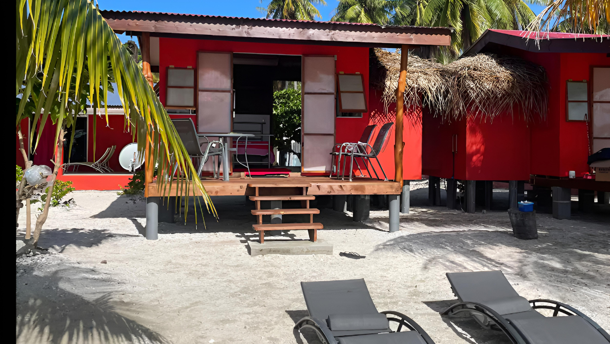 La salle de bain intérieure assure confort et intimité, tandis que la cuisine aménagée, située à l’extérieur, est partagée avec un second logement et vous permet de préparer facilement vos repas. Une petite terrasse privée, ainsi qu’un grand fare poté traditionnel( grand patio local) offrent des espaces où se détendre en profitant du cadre naturel. Ici, le jardin… c’est la plage : sable fin, brise du large et accès direct au lagon.