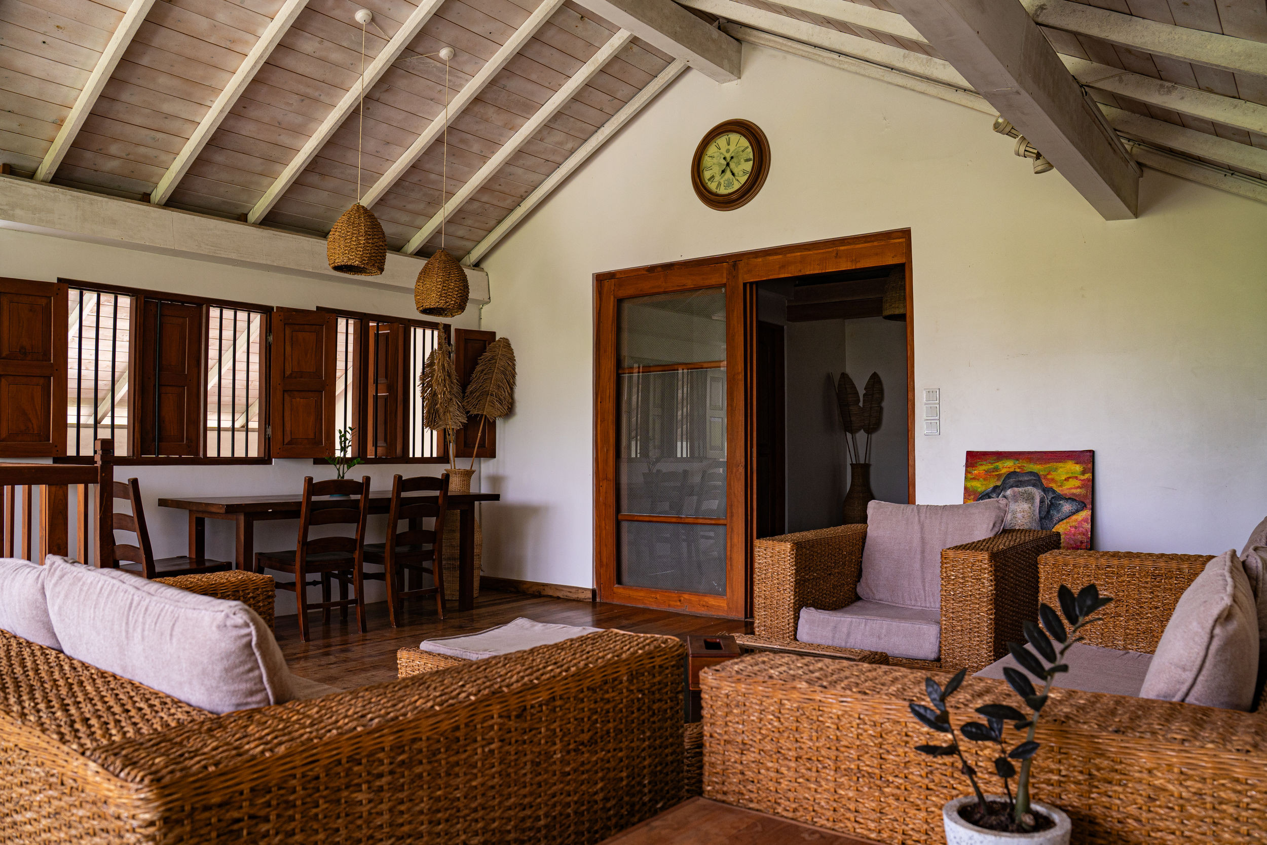 Le cœur de la maison, c’est cette magnifique salle à manger ouverte sur la piscine d’angle, un lieu de vie convivial idéal pour partager des repas, des jeux ou des lectures à l’ombre des palmiers. La cuisine, entièrement équipée, ravira les amateurs de cuisine maison comme les fans de smoothies tropicaux. Et si l’envie vous prend de vous isoler, plusieurs coins lecture, terrasses ombragées ou hamacs n’attendent que vous.